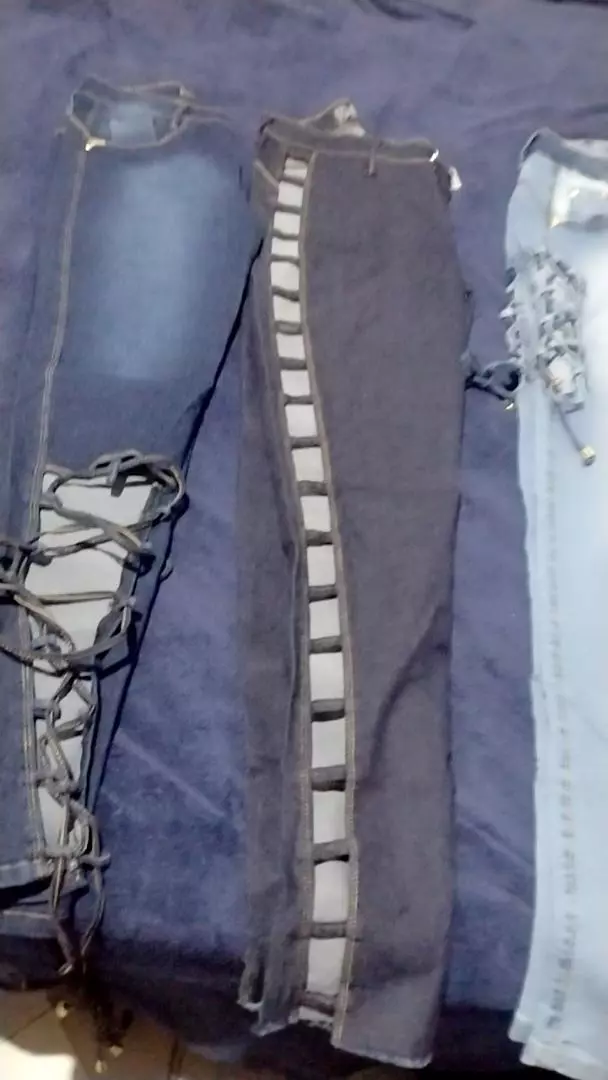 Compre a Calça Jeans Feminina com Abertura Lateral e Detalhe Transado na Raryel. Aproveite nossos preços baixos, promoções e descontos exclusivos. Perfeita para um visual moderno e elegante.
