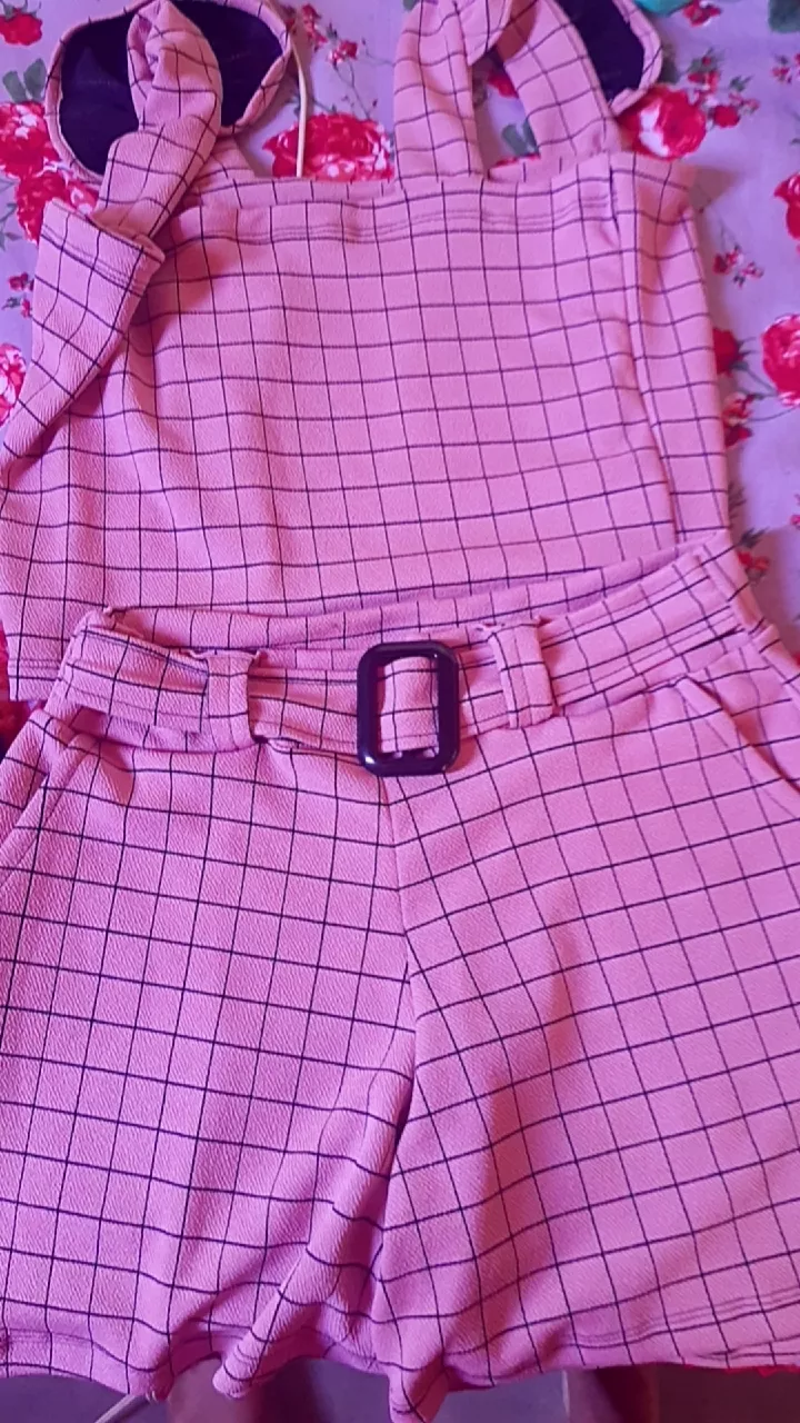 Compre o Conjunto Feminino Croped e Short Xadrez na Raryel. Perfeito para um look moderno e estiloso. Feito em crepe de malha, possui bolso, cinto fake e fivela. Aproveite nossos preços baixos!