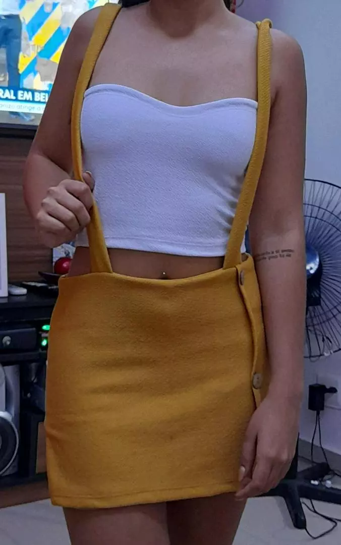 Cropped feminino + jardineira vermelha, promoção só hoje! - Conjunto Azul