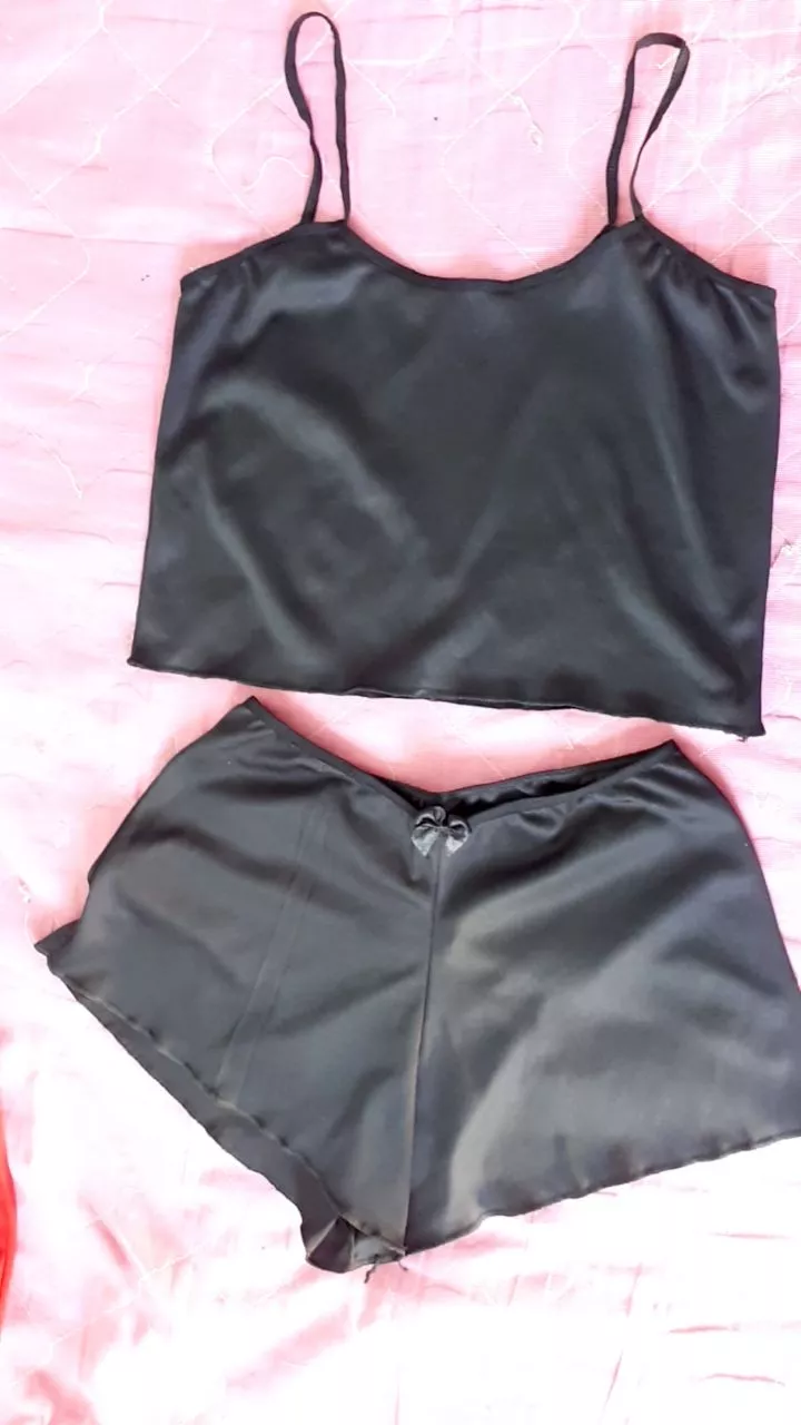 Cropped Thais Helanca Short e Camiseta Pijama Baby Doll Feminino - Preto