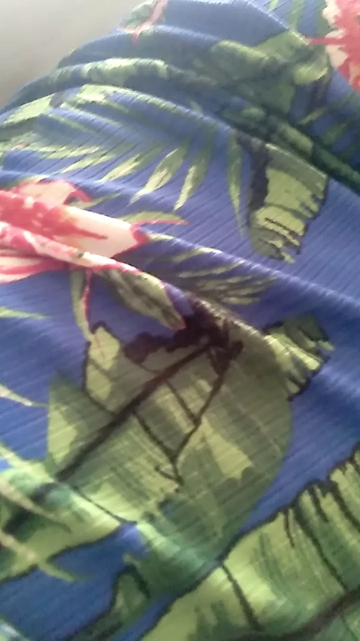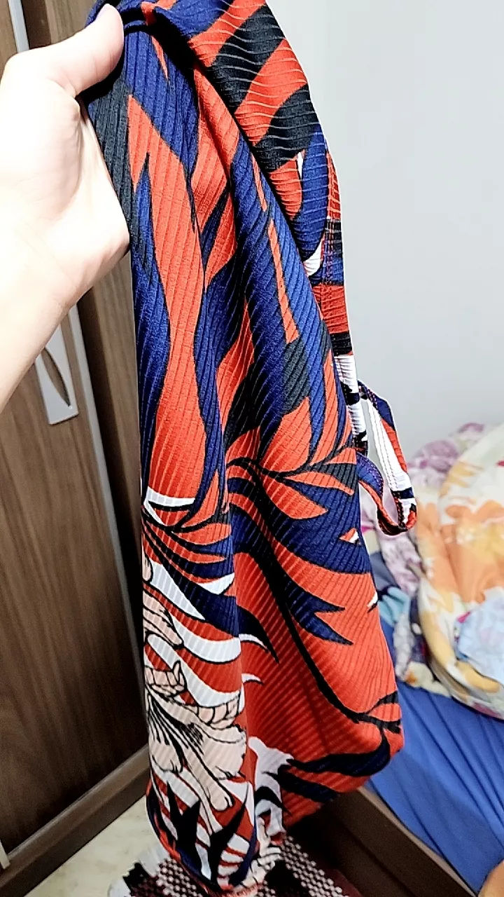 Modelo fica acima do joelho estampas vivas e muito bem acabado