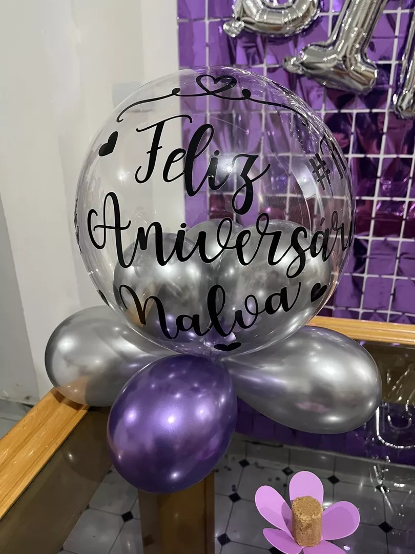 Decoração de aniversário: Balão Bubble Personalizado 24' + 10 Bexigas Metálicas 5' - Único