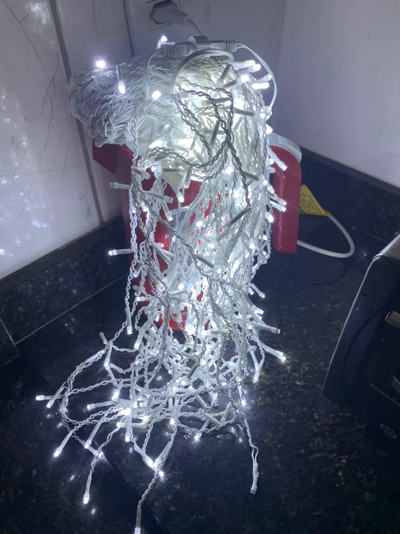 Cordão led à prova dágua com 400 lâmpadas de LEDs Pode ser utilizado para decoração externa como em árvores postes ou fachadas Para decoração interna como árvore de Natal escadas ou onde sua imaginação permitir