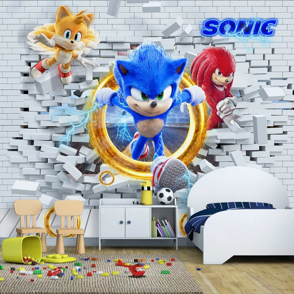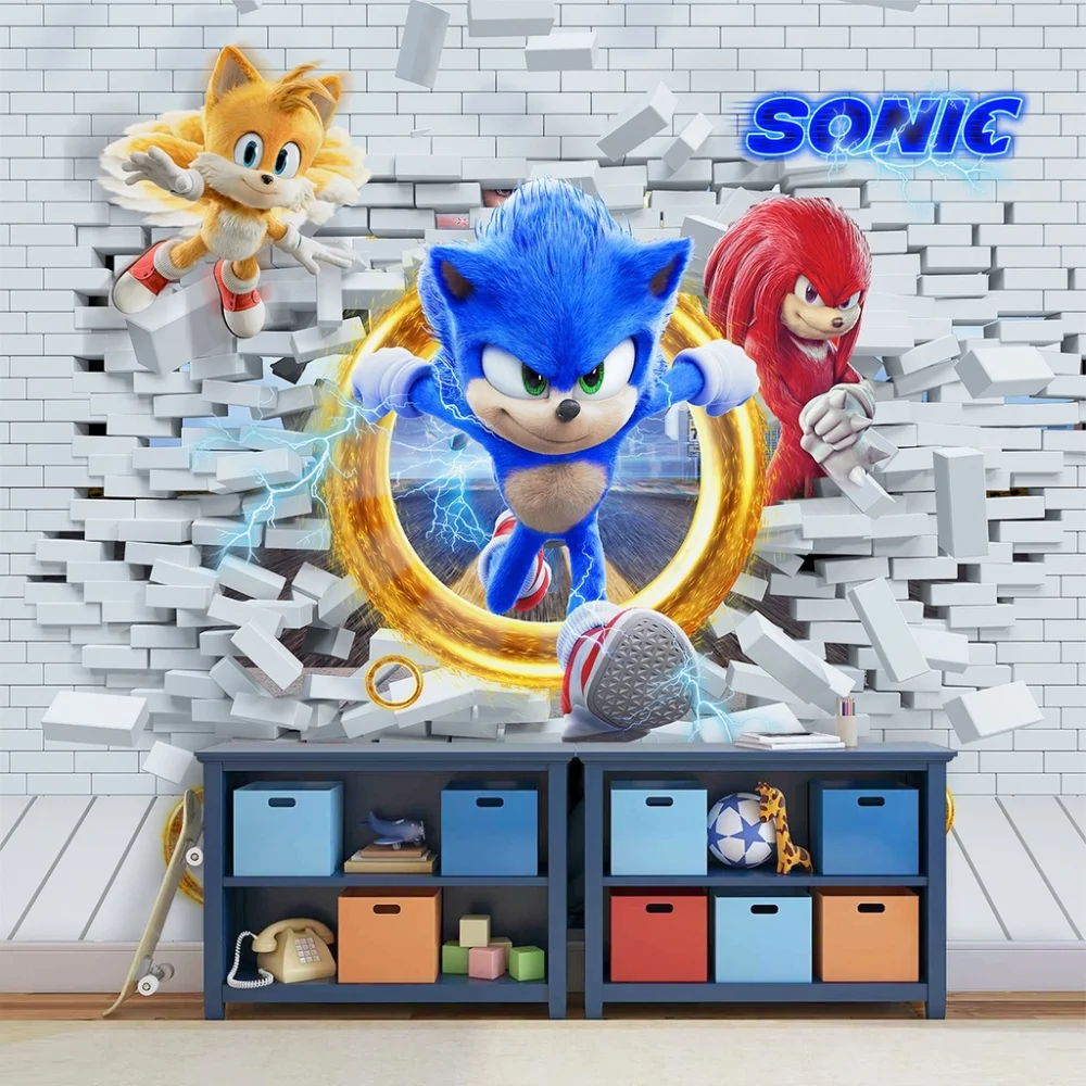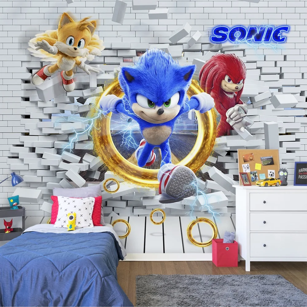 Decore o quarto de meninos com Papel de Parede Infantil Sonic 3D - Único