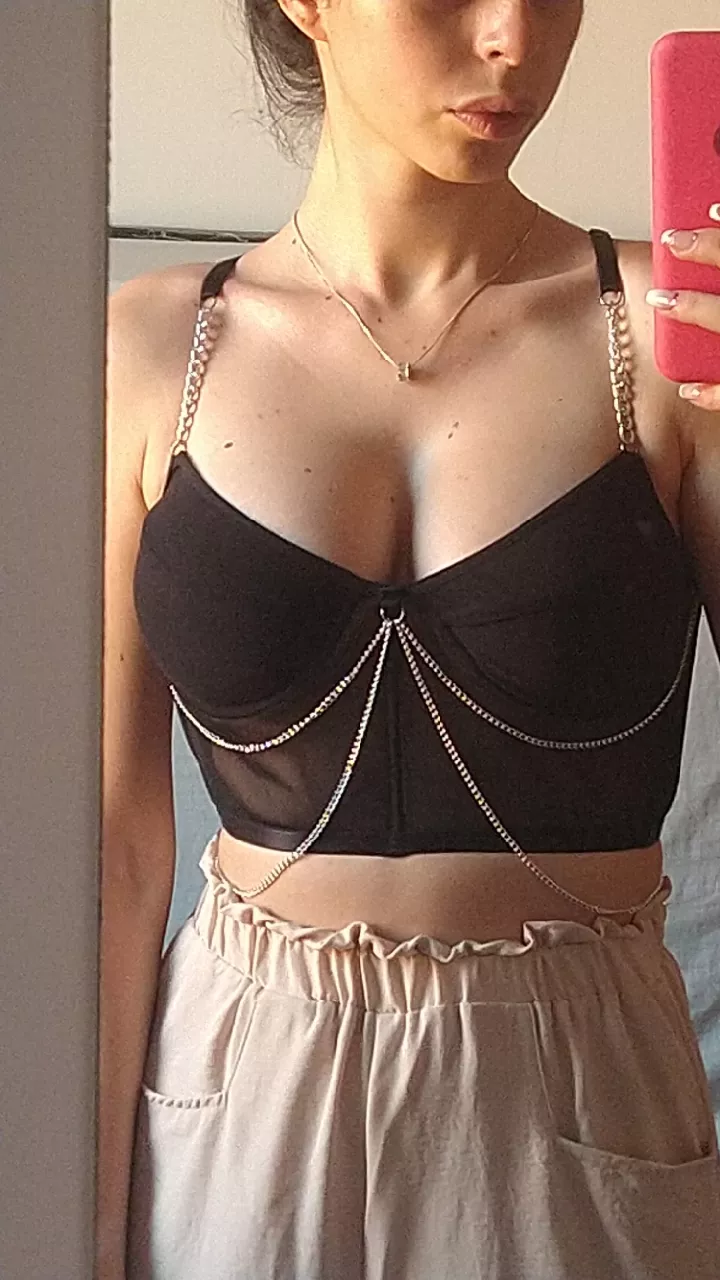 Delírio Cropped - Compre Online na Raryel - Preto com corrente Prata