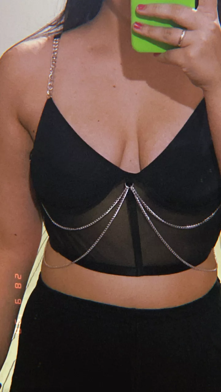 Delírio Cropped - Compre Online na Raryel - Vermelho com corrente Prata