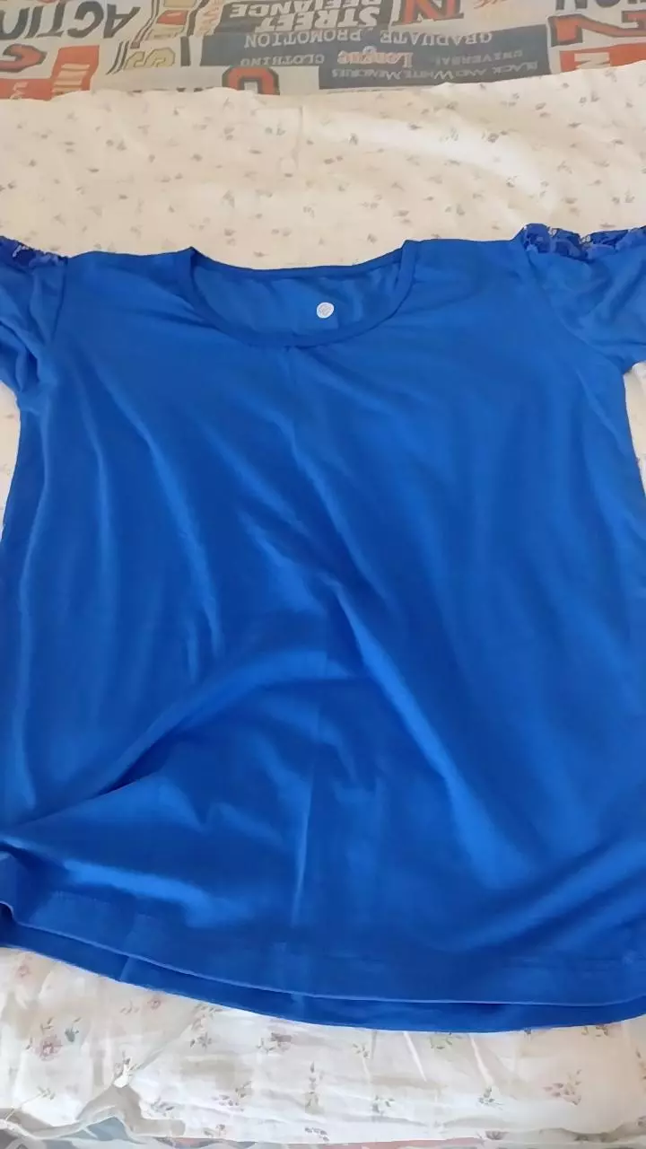 Detalhe de renda na manga - Blusa feminina Tshirt com renda - Azul Royal