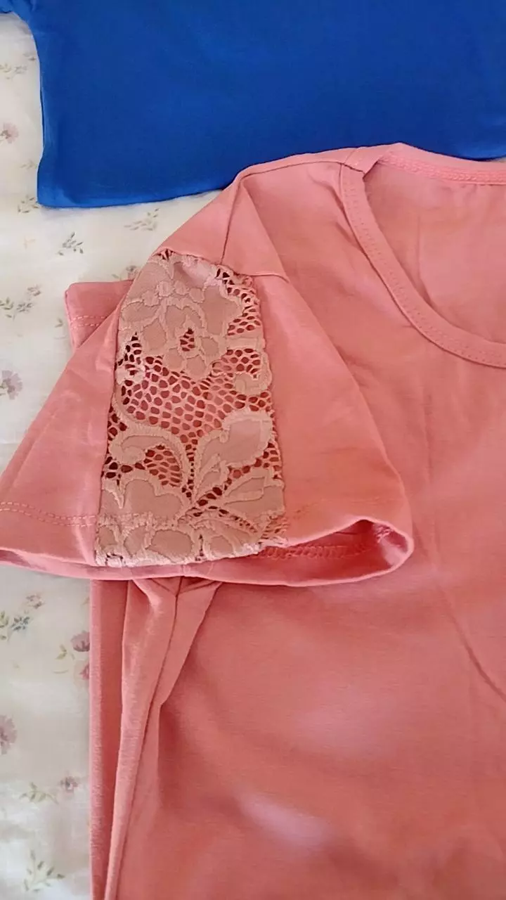 Compre a blusa feminina Tshirt com detalhe de renda na manga na loja online Raryel. Aproveite preços baixos, promoções e descontos exclusivos. Adicione estilo e elegância ao seu look!