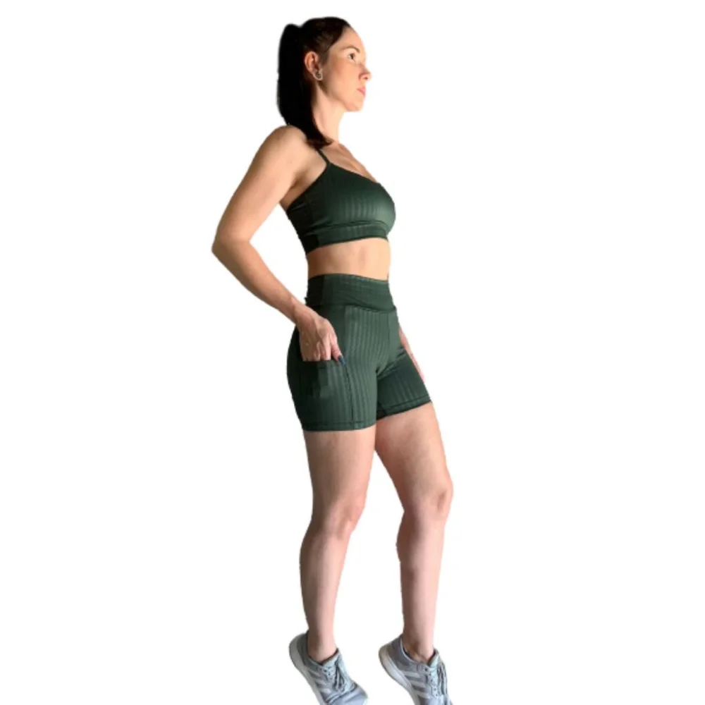 O Conjunto Top Shorts Empina Bumbum é perfeito para seus treinos na academia, fitness, corrida e ciclismo. Feito com tecido cirrê 3D de alta qualidade que proporciona conforto e liberdade de movimento. Seu design exclusivo realça suas curvas e empina o bumbum, te deixando ainda mais confiante durante os exercícios. Além disso, a loja online de roupas Raryel oferece preços baixos incríveis, promoções imperdíveis e descontos exclusivos para você comprar esse conjunto com um ótimo custo-benefício.