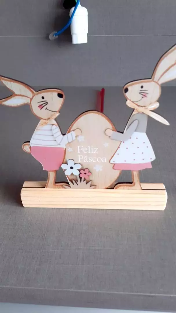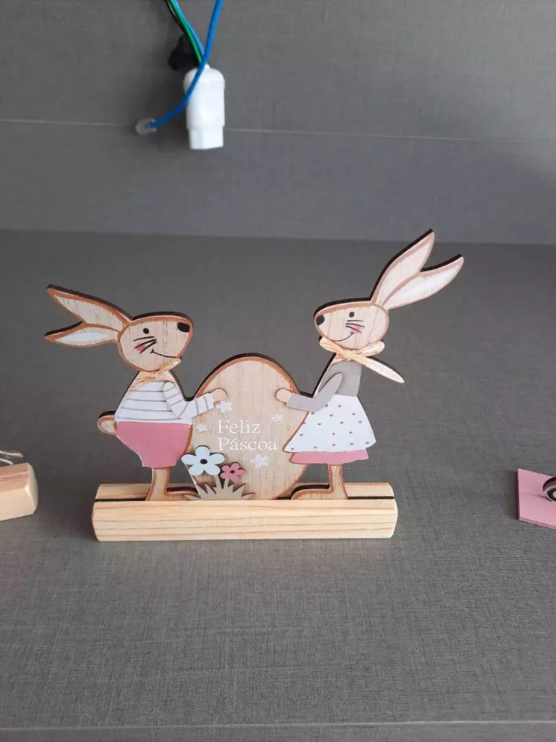 Casal Coelho decorativo para sua casa com base em pinus
