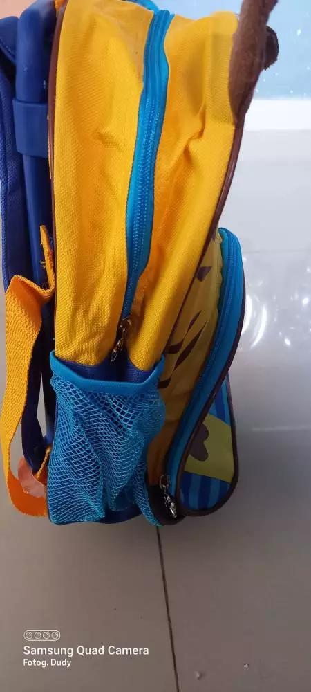 As mochilas contam com puxador que sobe e desce com facilidade e rodinhas resistentes bolso frontal para guardar pequenos objetos bolso principal para guardar objetos maiores e bolsos laterais ideais para levar copos e garrafinhas O design exclusivo e divertido torna a mochila ainda mais bonita