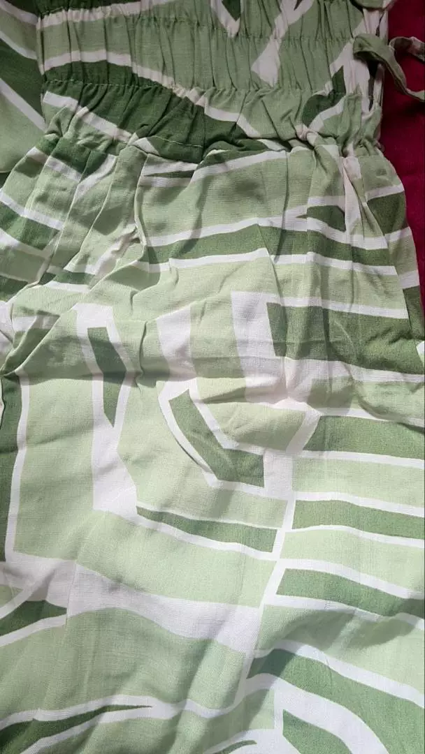 Possui elástico largo no cós com detalhe enfeite amarração e bolsos laterais