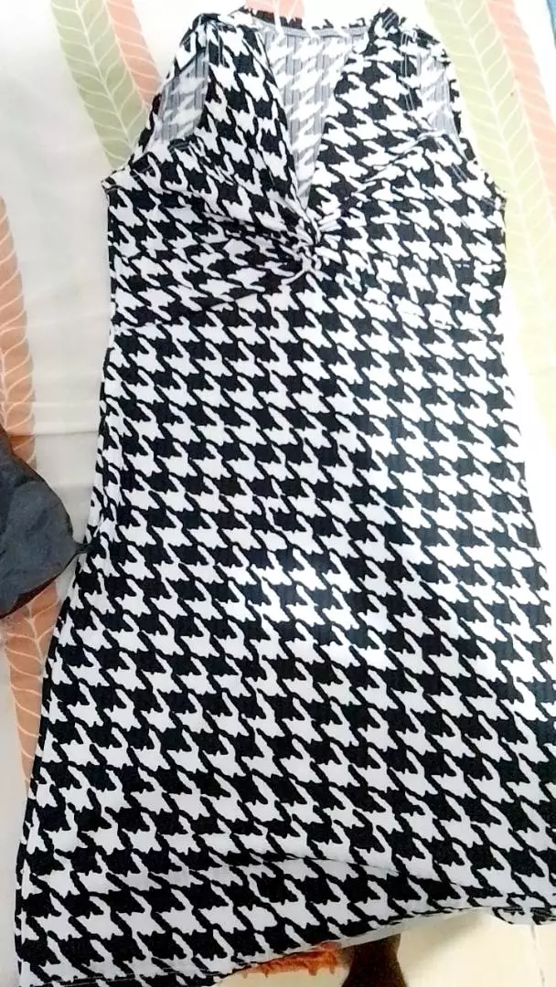 Vestido Xadrez Preto e Branco Pied Poule Canelado Justo