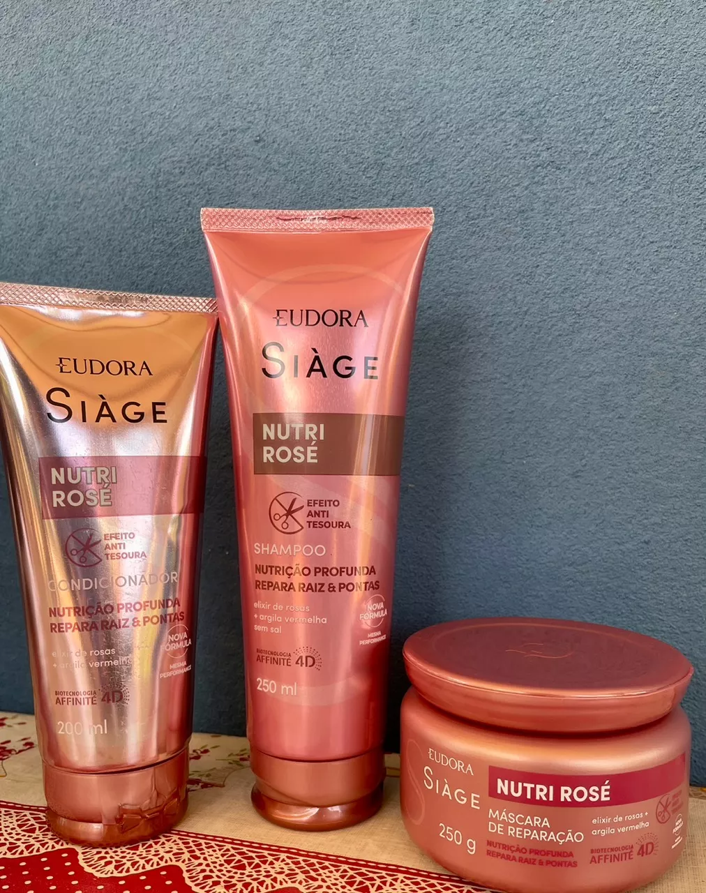 Compre o Kit Siàge Nutri Rosé da Eudora na loja online de roupas Raryel. Tenha cabelos nutridos, hidratados e com um brilho incrível. Aproveite nossos preços baixos e descontos exclusivos!