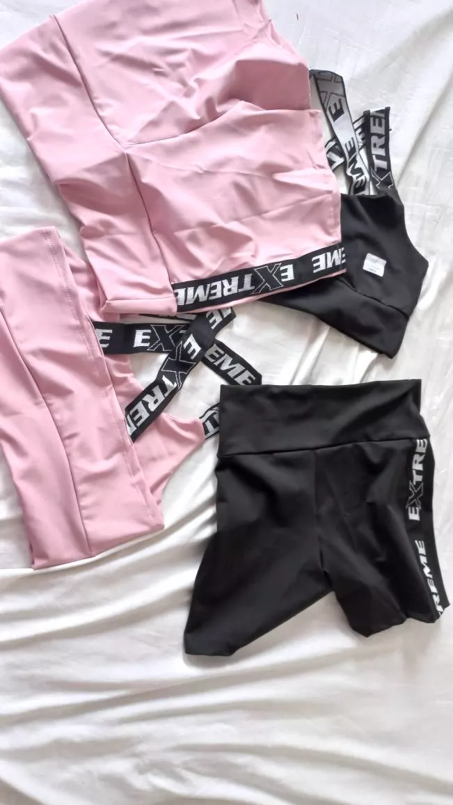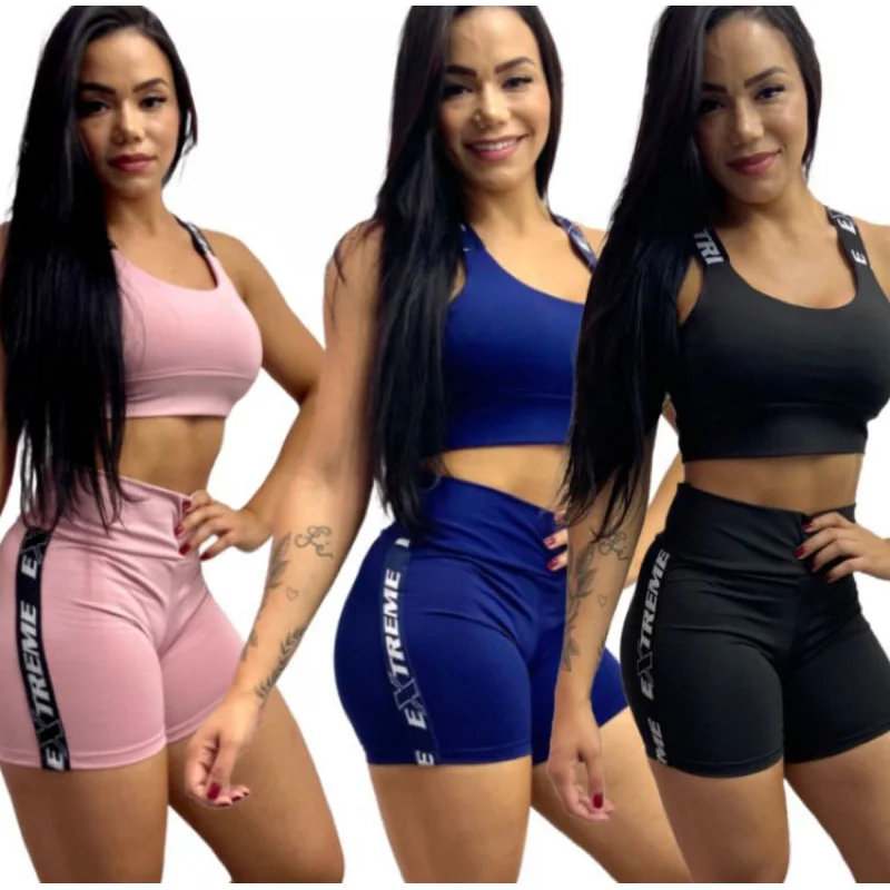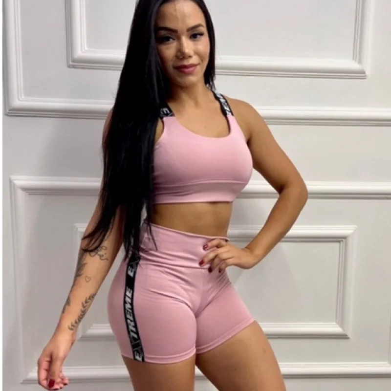 Compre o Conjunto Feminino Cropped e Short EXTREME para treinar na academia com estilo. Feito especialmente para mulheres fitness, esse conjunto oferece conforto, liberdade de movimento e estilo. Aproveite os preços baixos e descontos da loja online de roupas Raryel.