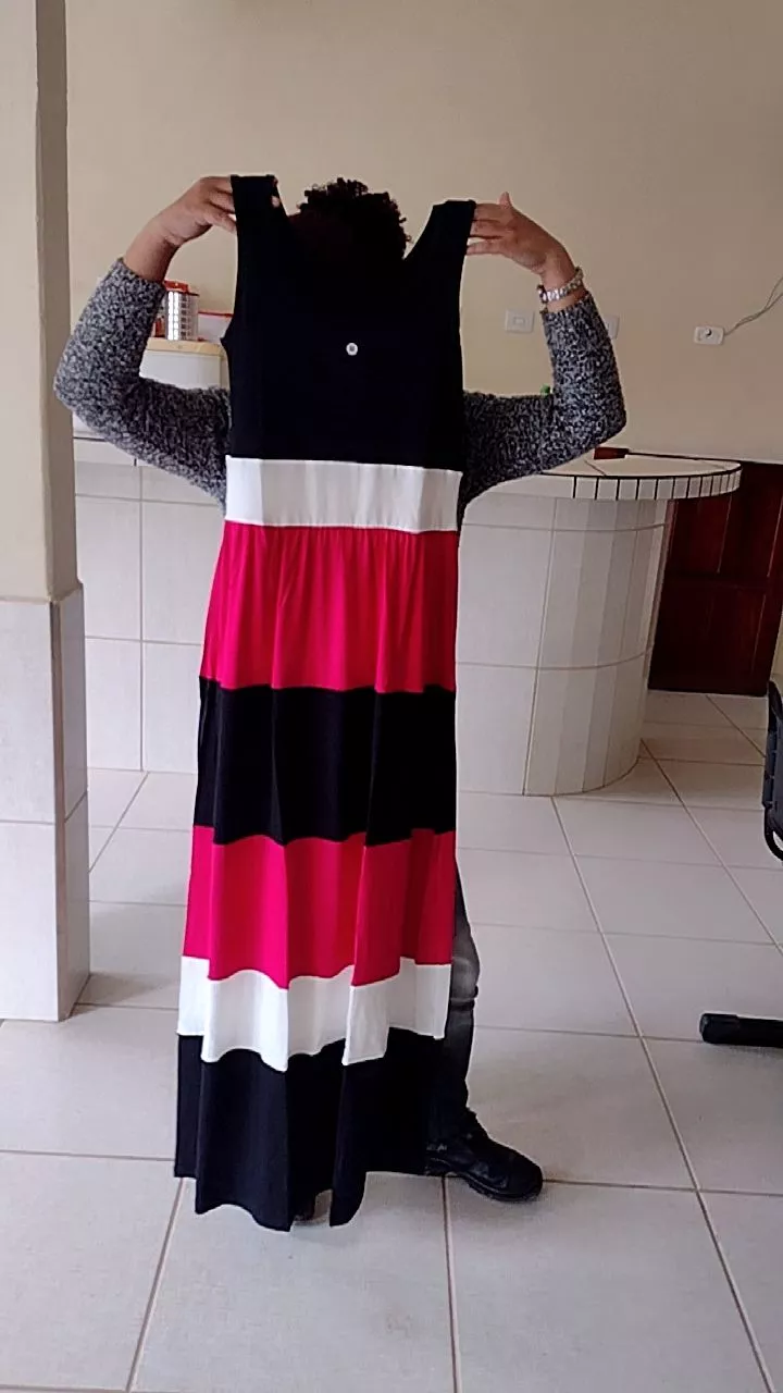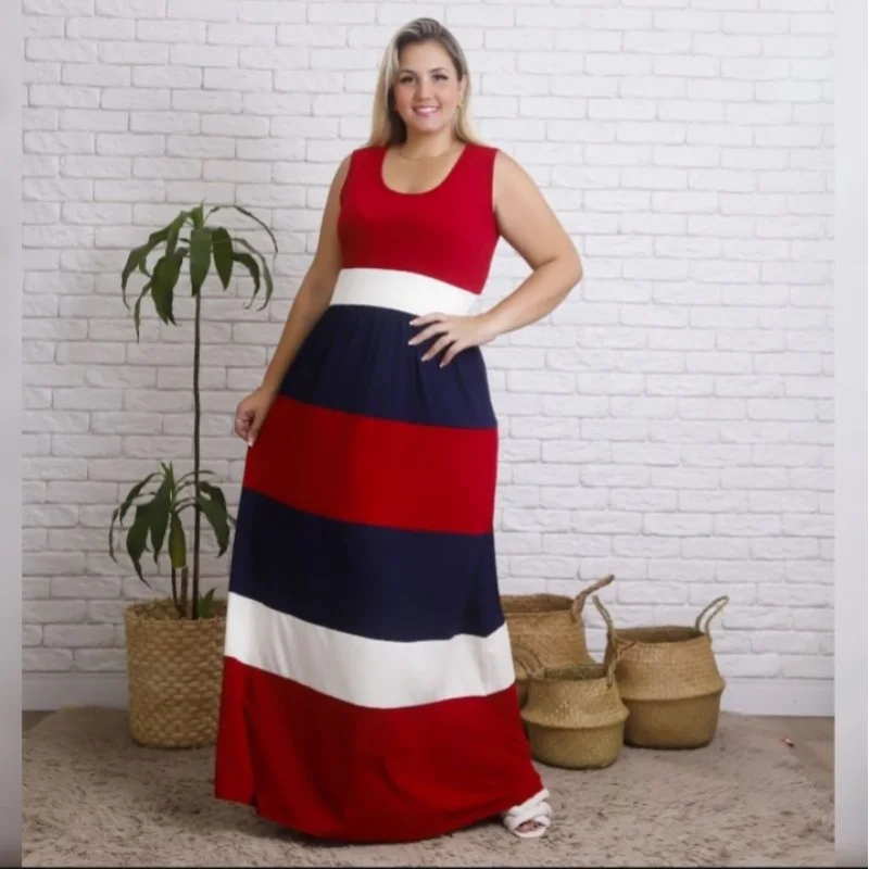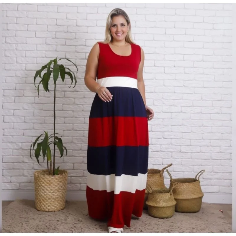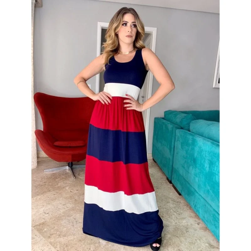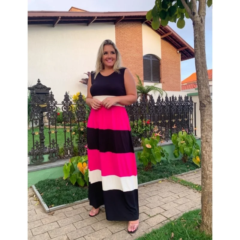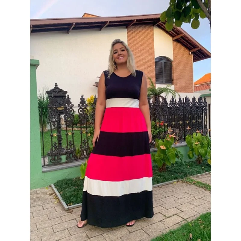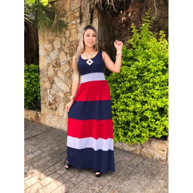 Vestido Longo Regata Liso com Estampado we Listras Malha Viscolycra
