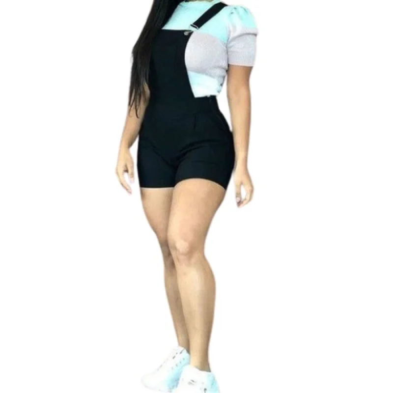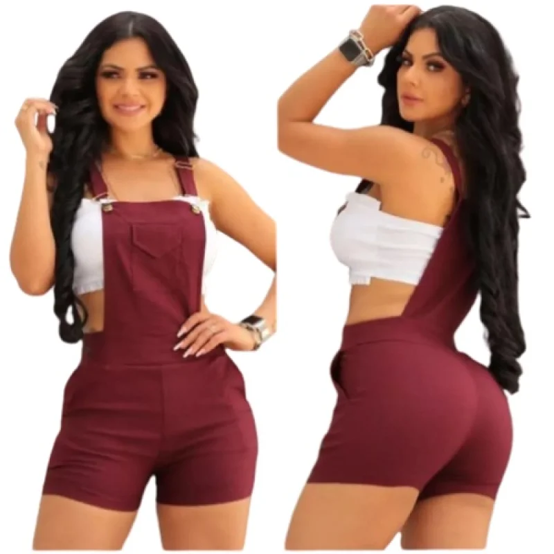 Compre o macaquinho curto com alças suspensórios feminino na loja online Raryel. Aproveite nossos preços baixos e promoções para garantir um look estiloso e confortável.