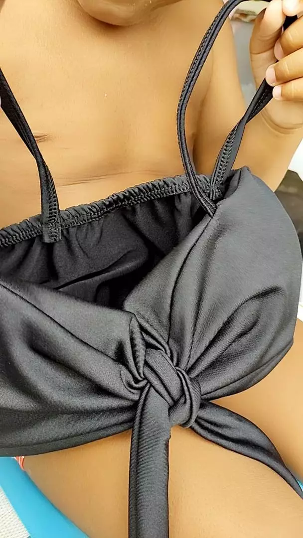 Feminino Biquíni Estampado Cintura Alta Laço Hot Pants CD033 - Listrado preto