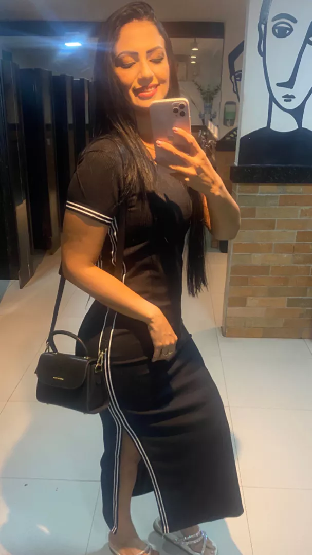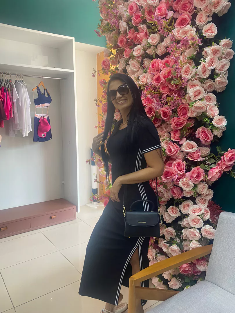 Modelo tubinho com fenda nas laterais com bojo faixa na lateral e barra da manga manga curta e gola redonda