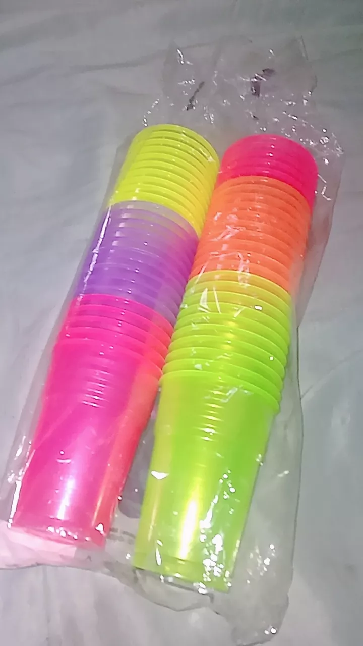 Deixe sua festa mais animada e colorida com os Copos Neon Eles são resistentes e com cores vivas ideal para baladas festas aniversários e comemorações Experimente em Luz Negra para uma Melhor Experiência