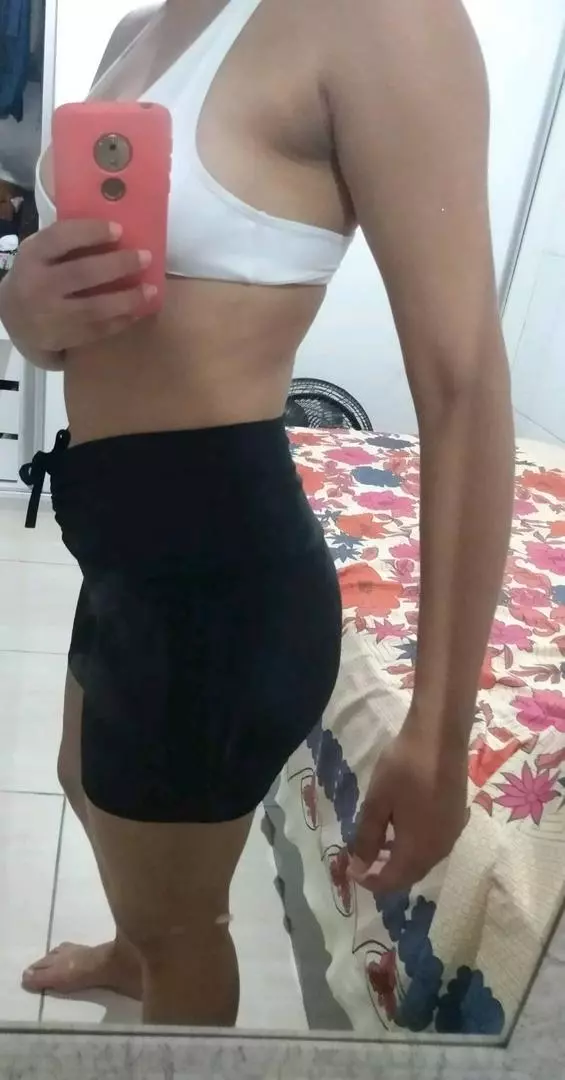 O tecido é bem leve e super confortável com 92 poliéster e 8 elastano sem transparência É super durável e não desbota
