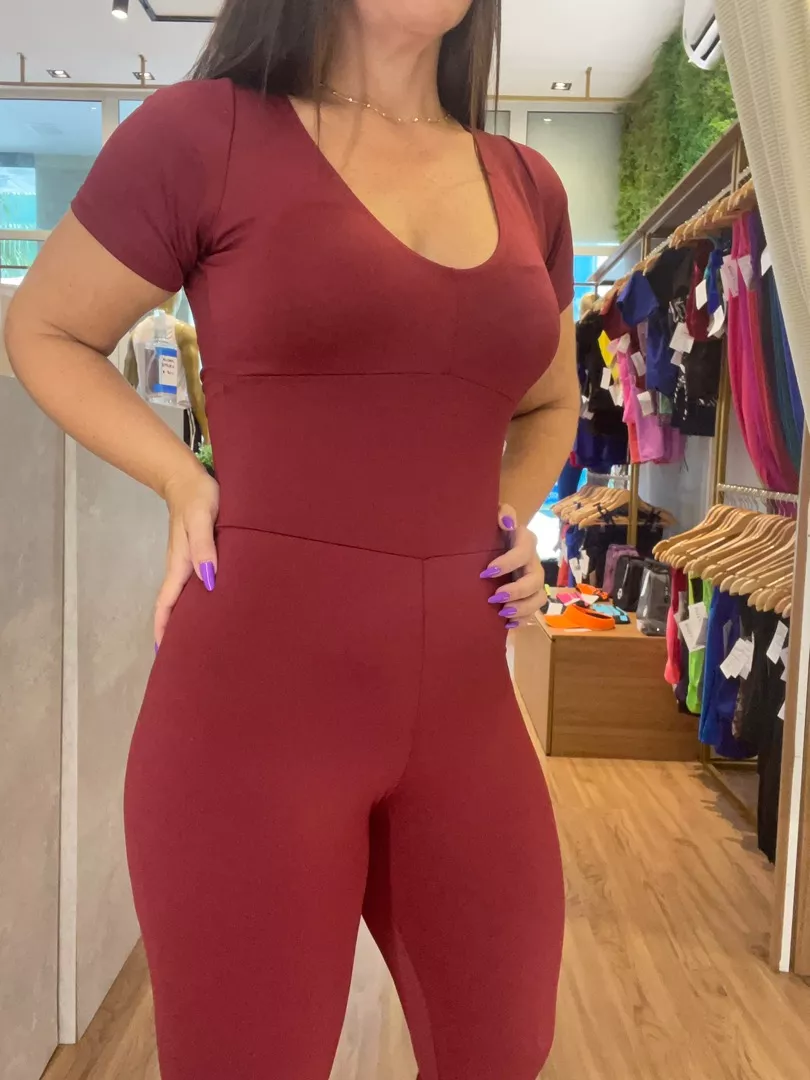 Fitness Macacão Longo Suplex Manga Curta Feminino Costa Fechada - Mandala