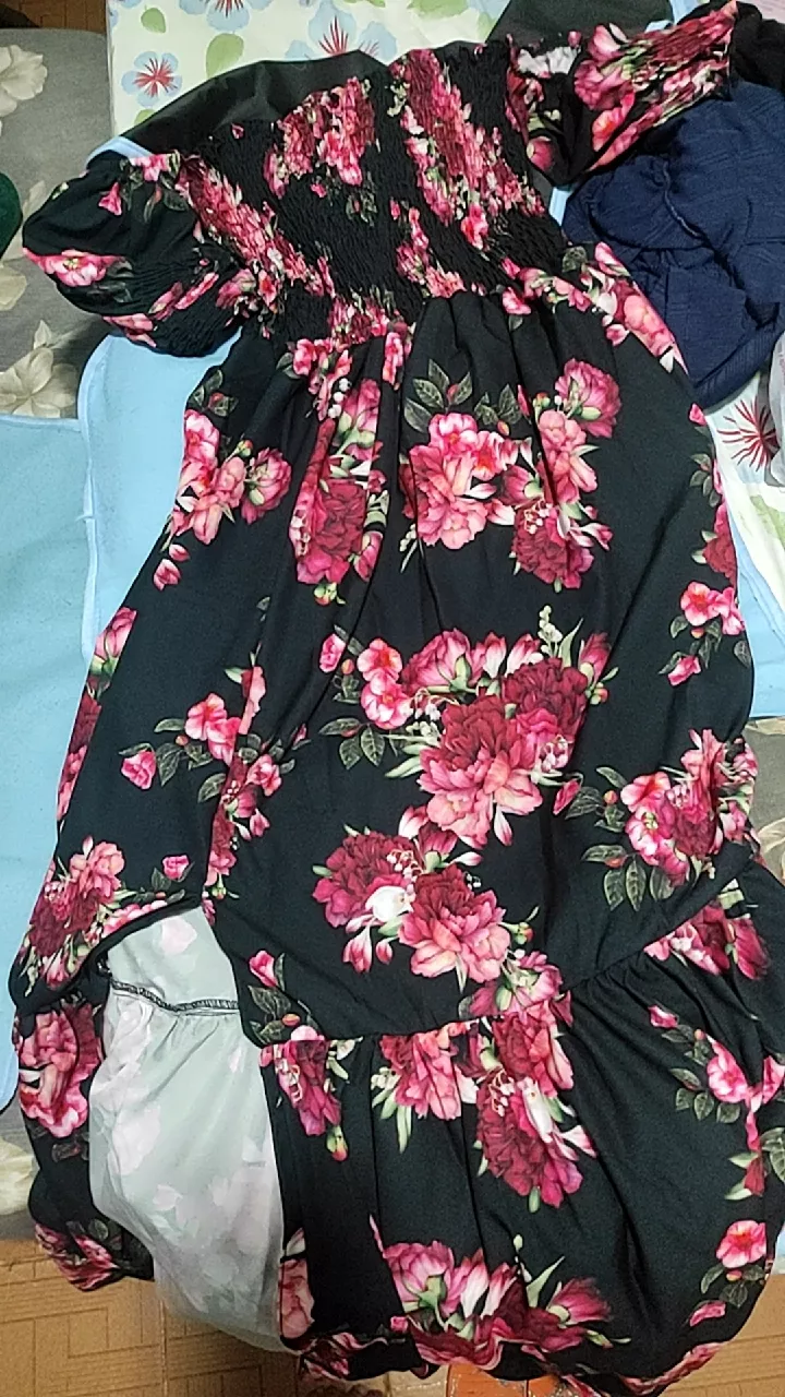 Floral longo ciganinha lastex - Vestido ombro a ombro com fenda - Xadrez 49