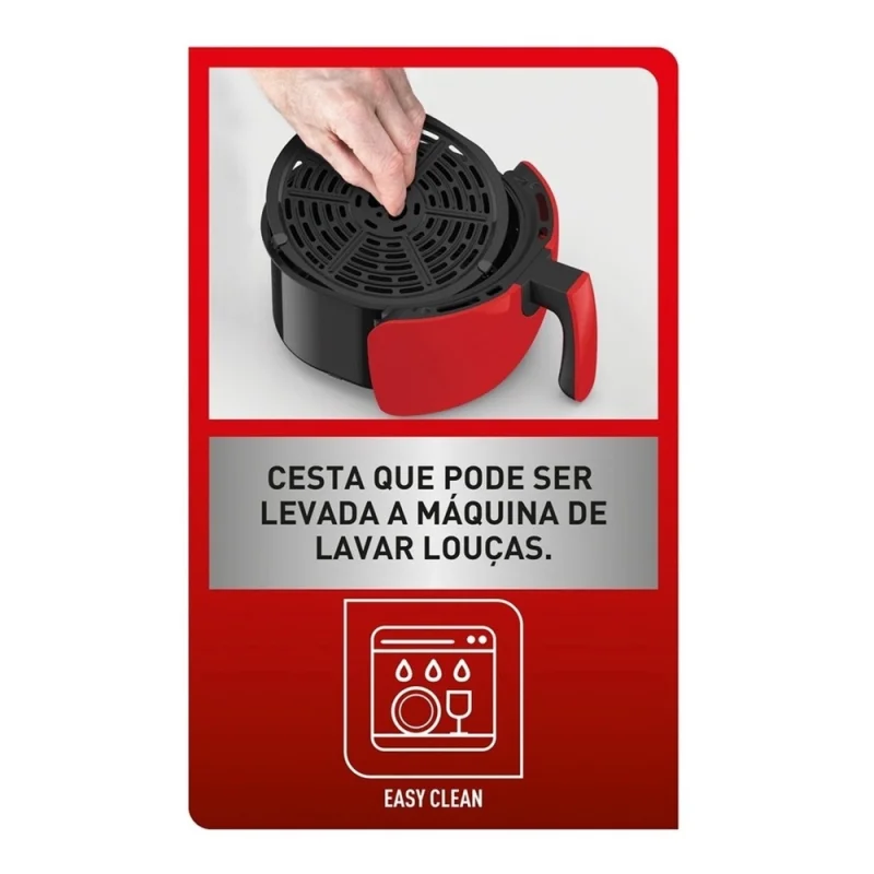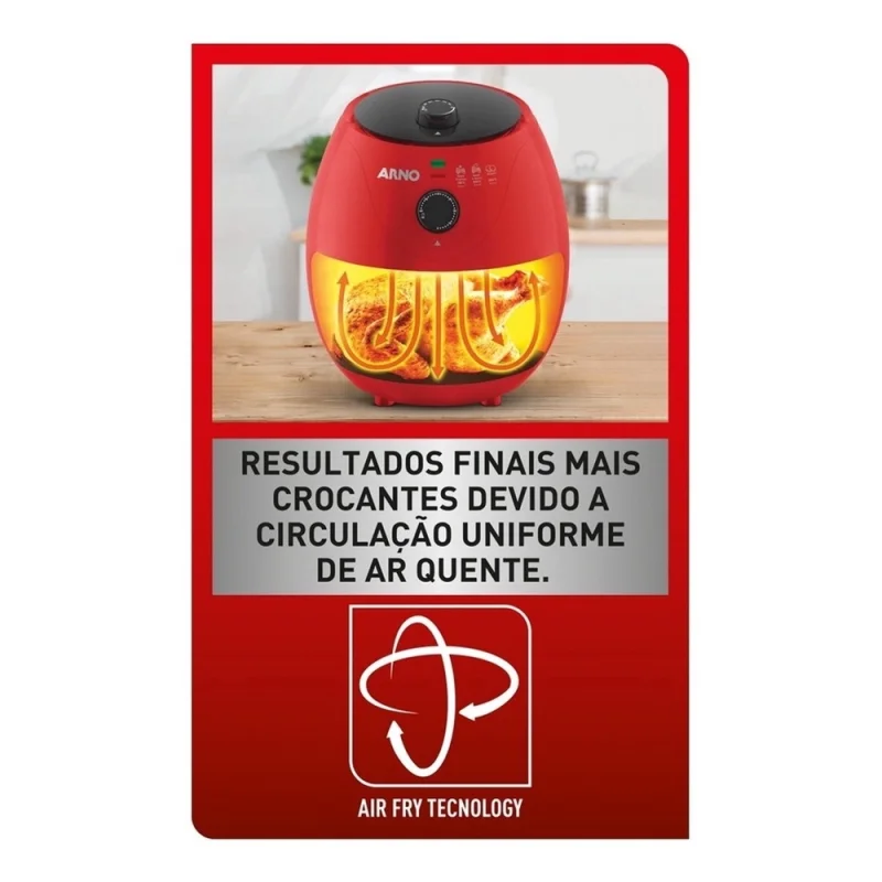 Fritadeira Arno Easy Fry Preta 3.3L Air Fryer 127V - Vermelha