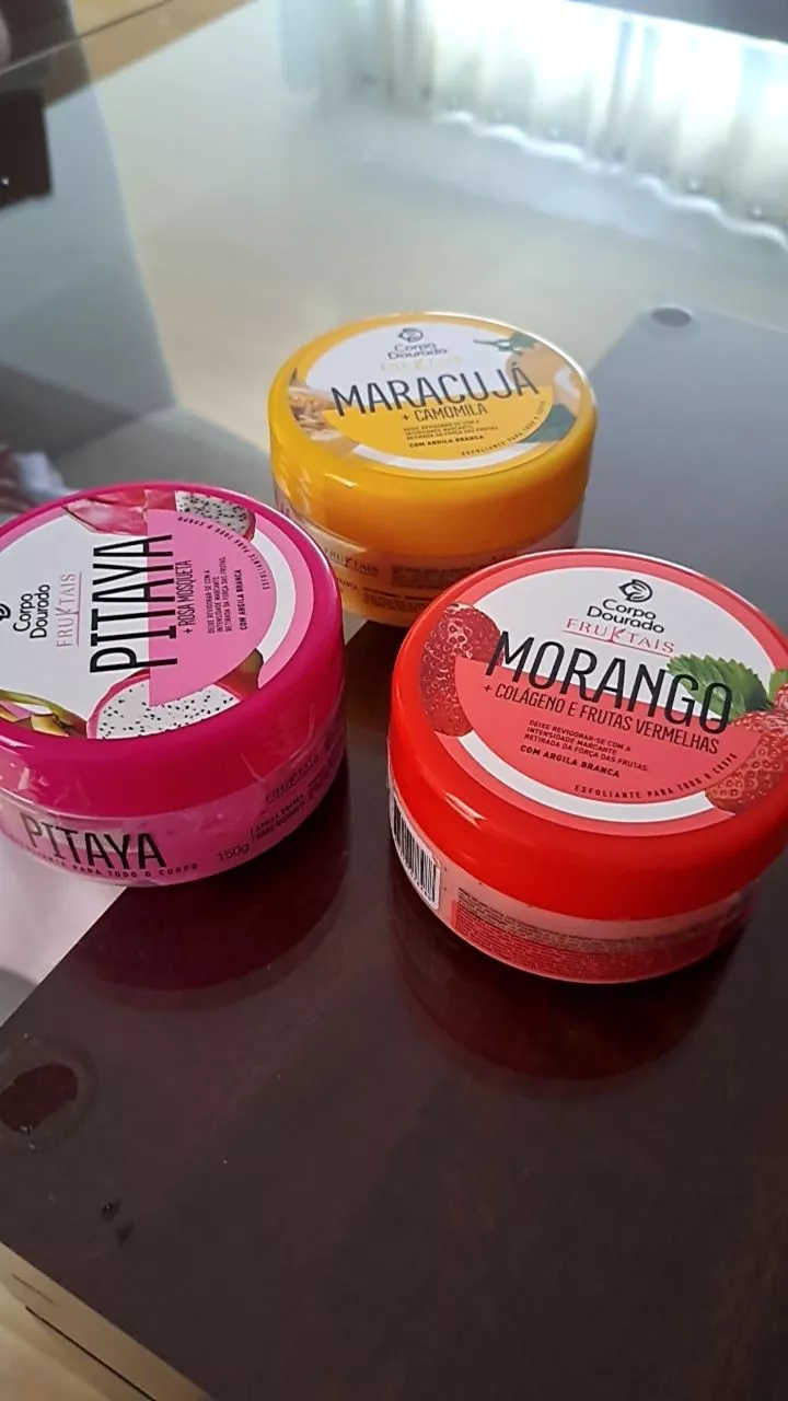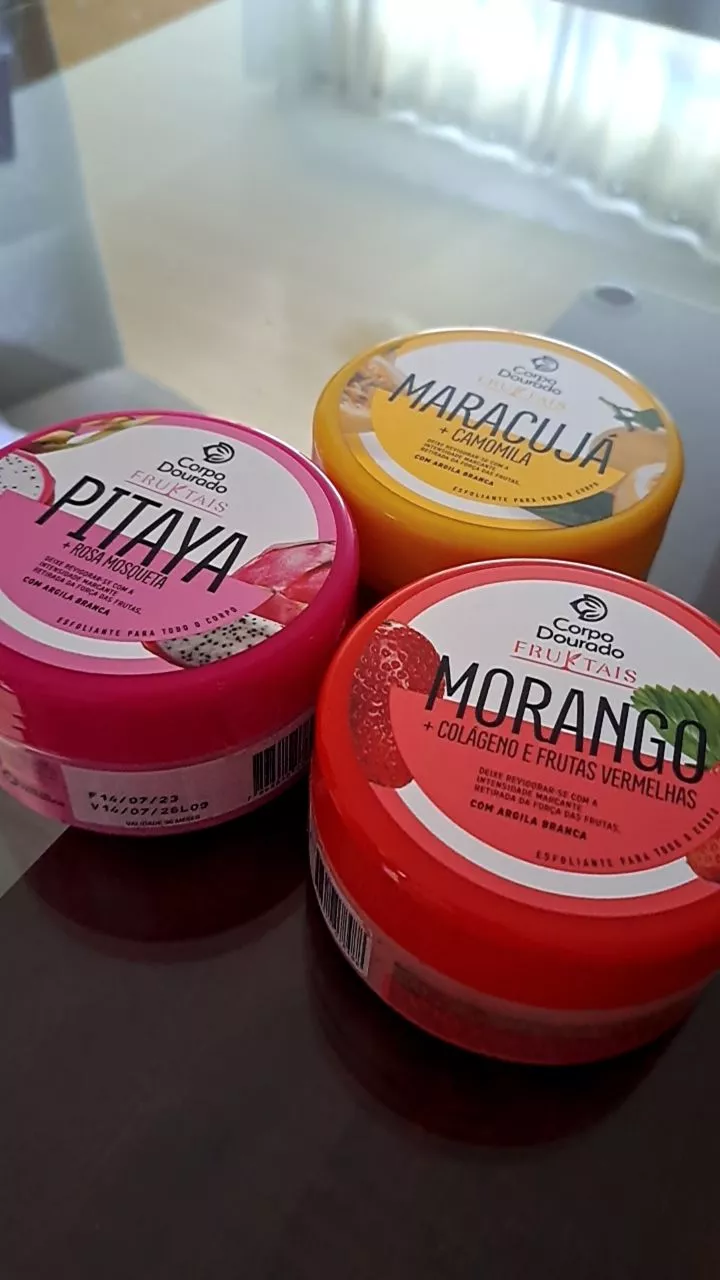 Compre o Esfoliante Corpo Dourado Fruktais 3 em 1 na loja online de roupas Raryel. Tenha uma pele radiante, macia e revitalizada. Aproveite nossos preços baixos e promoções!