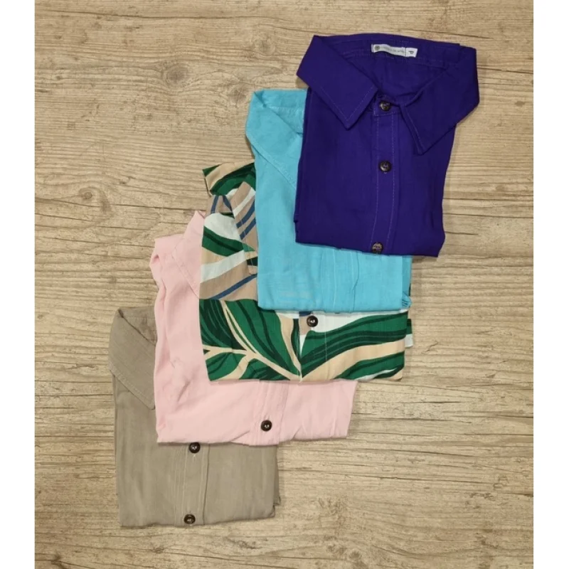 Camisa de botão de coco natural manga curta e gola tradicional super confortável feita em viscolinho com o caimento leve e perfeito Podem ser usadas de diversas formas desde ir à praia ou um evento social
