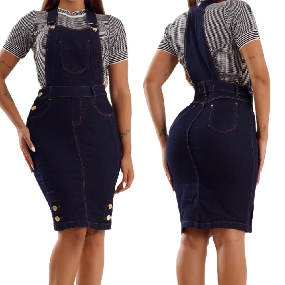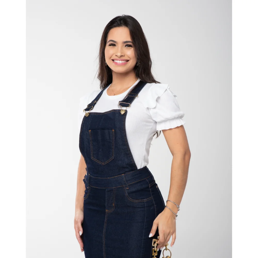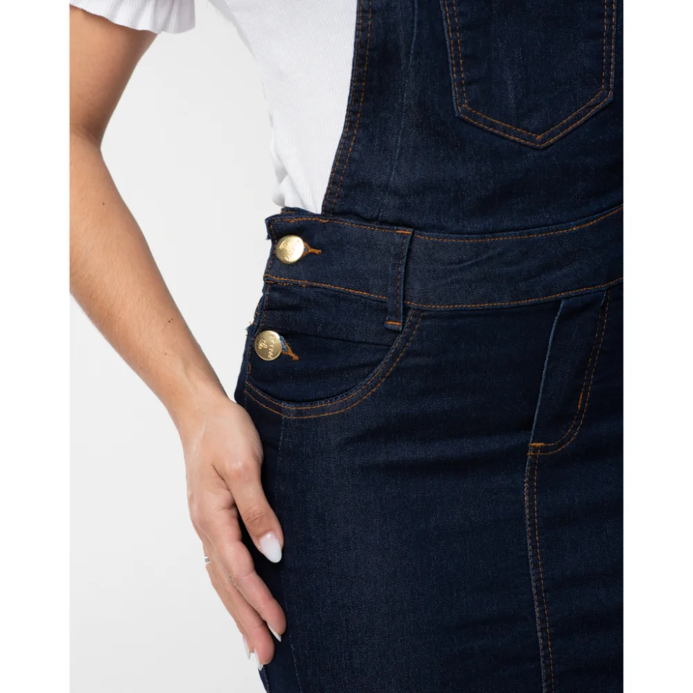 Jardineira Evangélica Jeans Barra Botão 7PALLAS - Azul Escuro