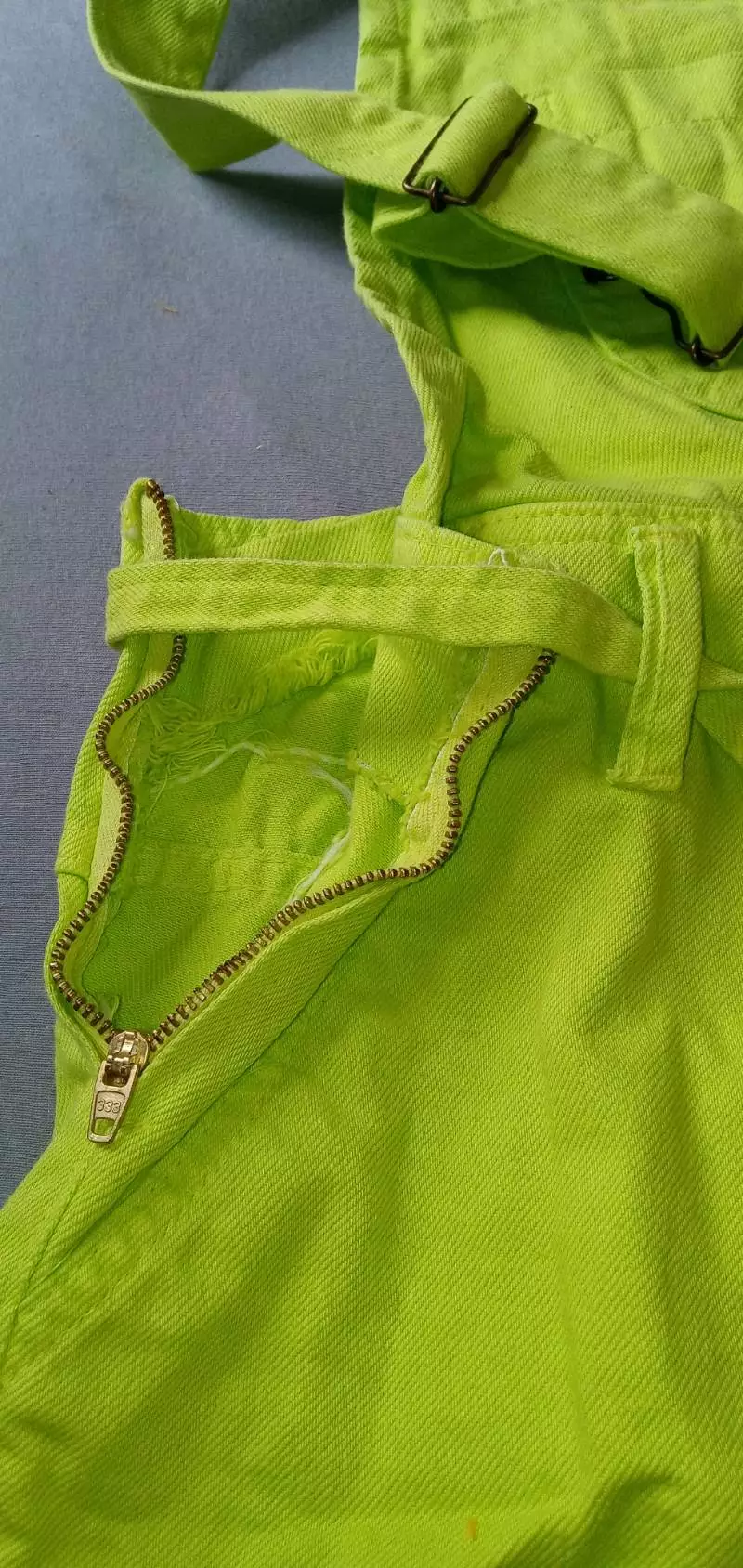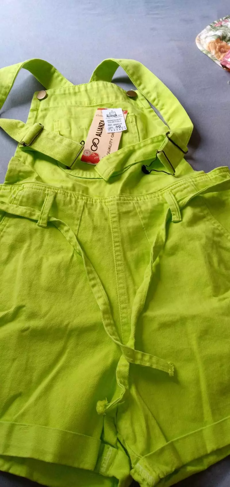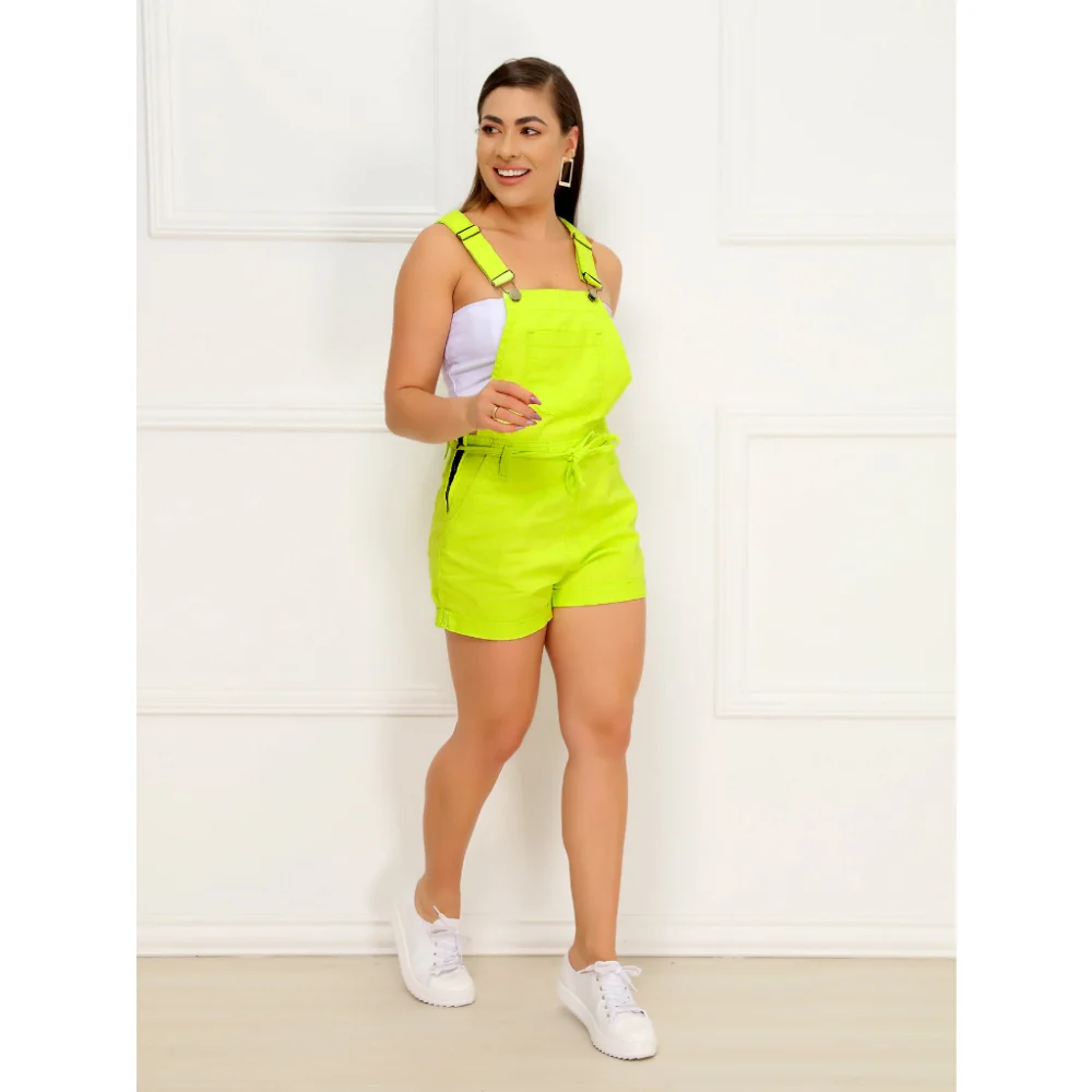 Jardineira Feminina Colorida Alça Suspensório Macaquinho Jeans Curto - Verde Limão
