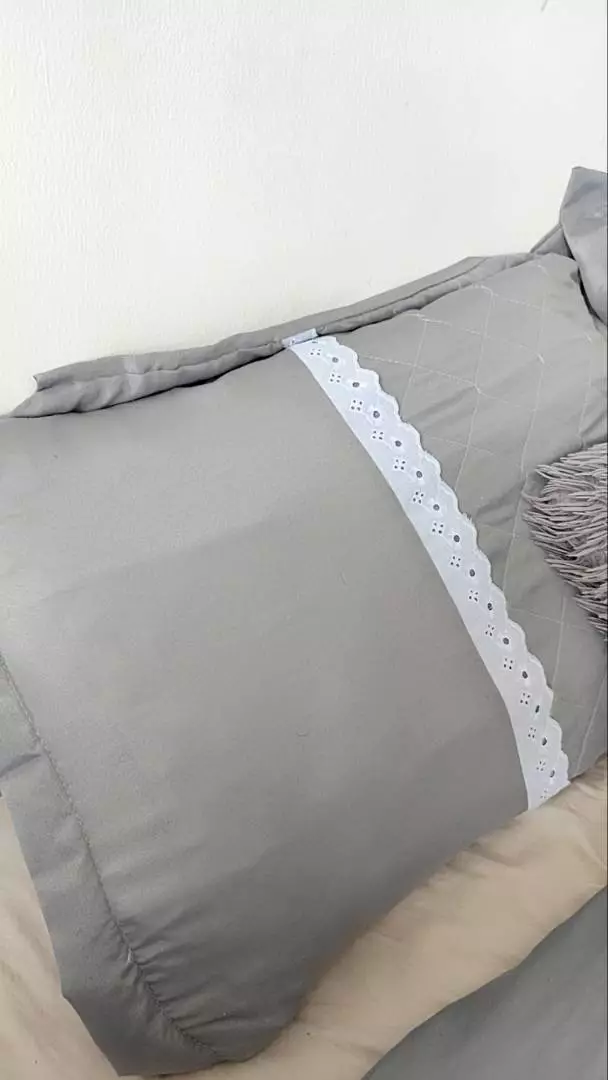 Jogo de Lençol Queen Padrão + Kit 6 Peças Edredom Oliveira - Cinza