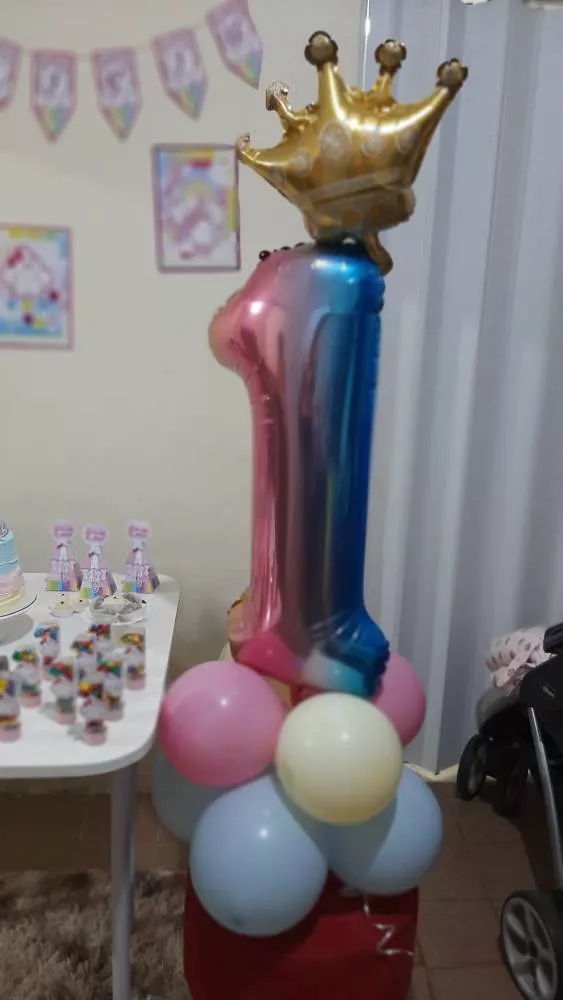 Kit Degrade Balão Colorido Multicor Número Pol C/Coroa Dourada - 8