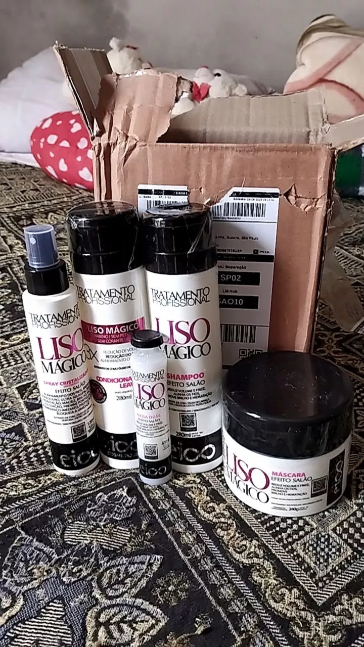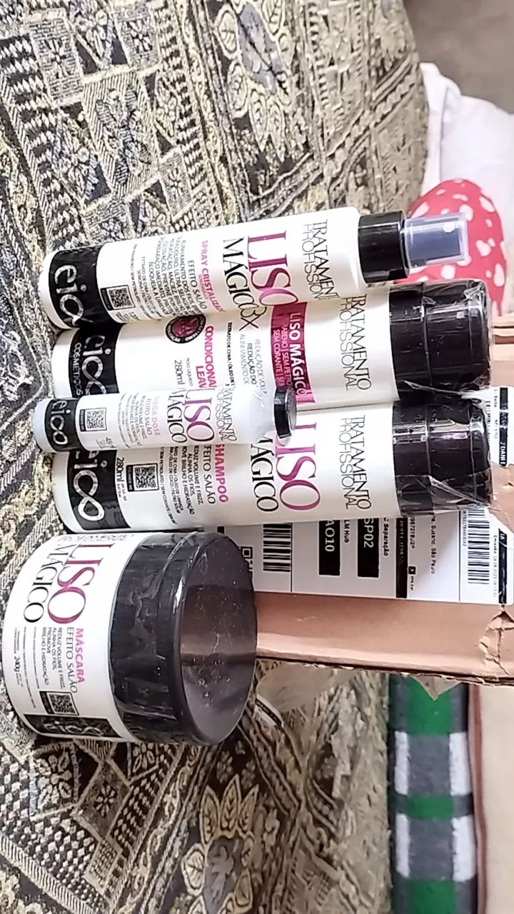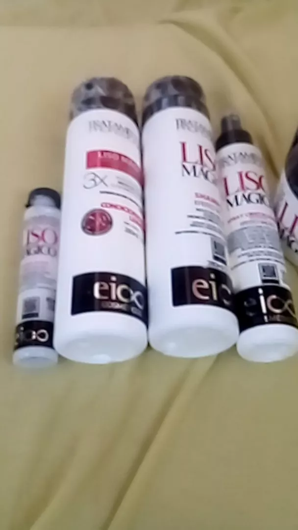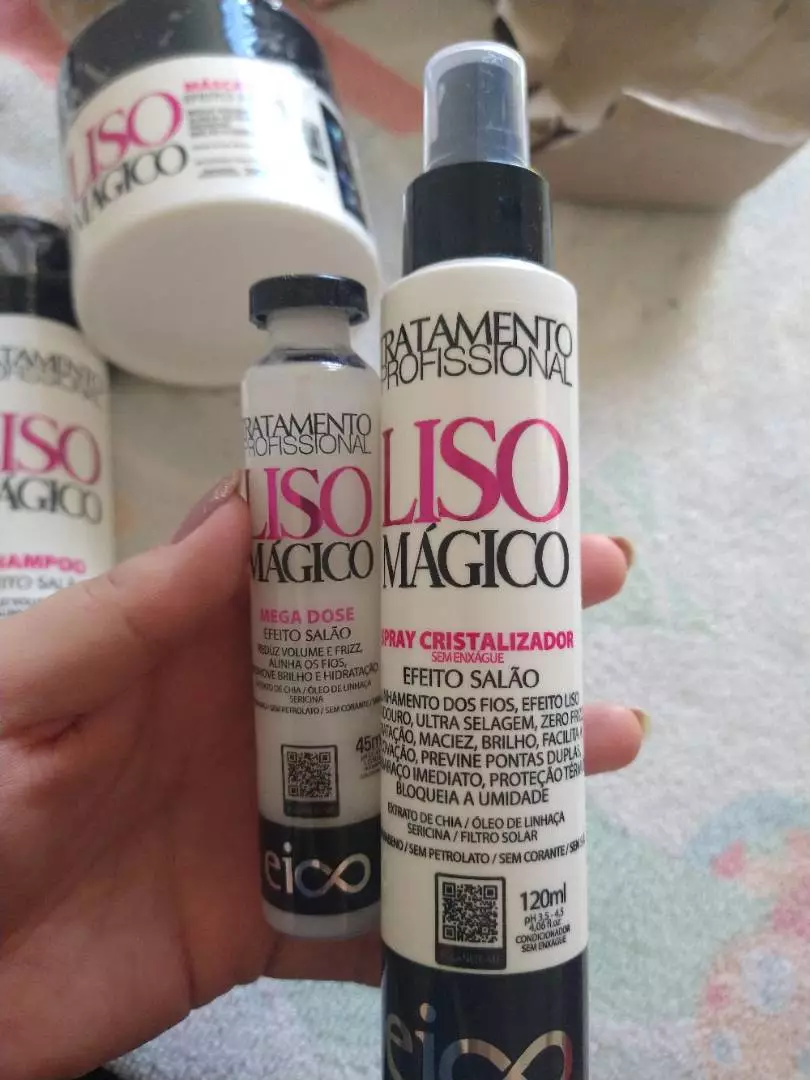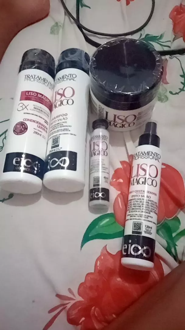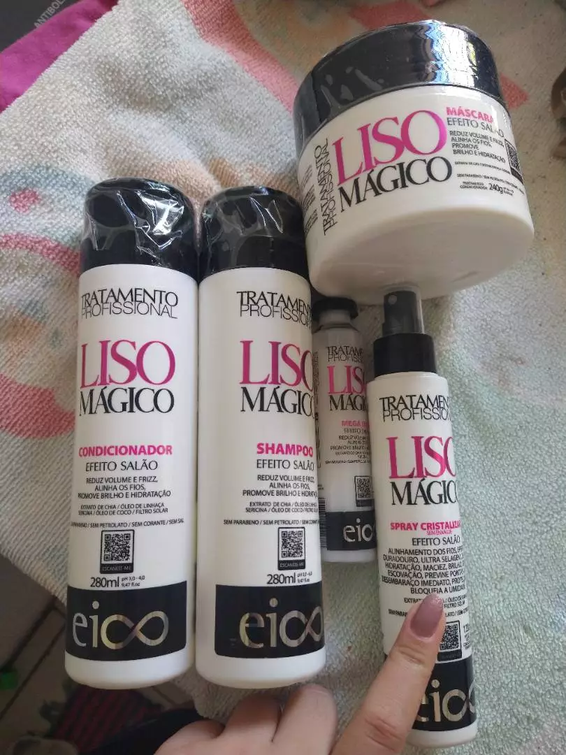 Compre o Kit Eico Liso Mágico com Shampoo, Condicionador, Máscara de Hidratação, Spray de Proteção Térmica e Ampola. Tenha cabelos lisos perfeitos e protegidos. Aproveite preços baixos e descontos na loja online de roupas Raryel.
