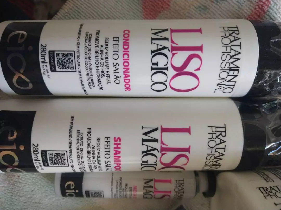Kit de tratamento para cabelos lisos naturais ou com química Kit Eico Life Liso Mágico mantém os fios disciplinados e sem volume Proporciona alinhamento dos fios por mais tempoKit Eico Life Liso Mágico possui fórmula versátil que pode ser usada tanto antes quanto durante ou depois de progressivas e escovas com o secador Prolonga o efeito liso nos fios mais tempo além de garantir brilho e maciez intensos