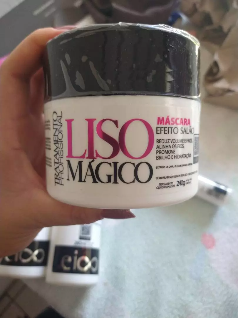 Máscara capilar para cabelos lisos naturais ou quimicamente tratados Eico Life Liso Mágico Tratamento disciplina e mantém o efeito liso Reduz o volume e o frizz para proporcionar caimento muito sedoso