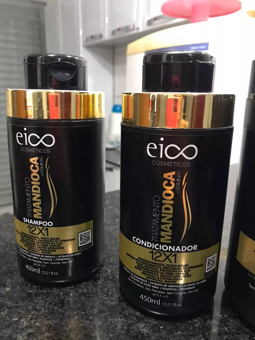 O Kit Eico Mandioca é perfeito para quem deseja ter cabelos hidratados e saudáveis. O shampoo limpa profundamente os fios sem ressecar, enquanto o condicionador desembaraça e proporciona maciez. A máscara de hidratação intensa nutre os cabelos da raiz às pontas, deixando-os mais fortes e brilhantes. O spray leave-in protege os fios contra danos externos e facilita a modelagem dos cabelos. Já a ampola de crescimento capilar estimula o crescimento dos fios, tornando-os mais compridos em menos tempo. Compre agora na loja online de roupas Raryel e aproveite as vantagens de preços baixos, promoções exclusivas e descontos especiais!