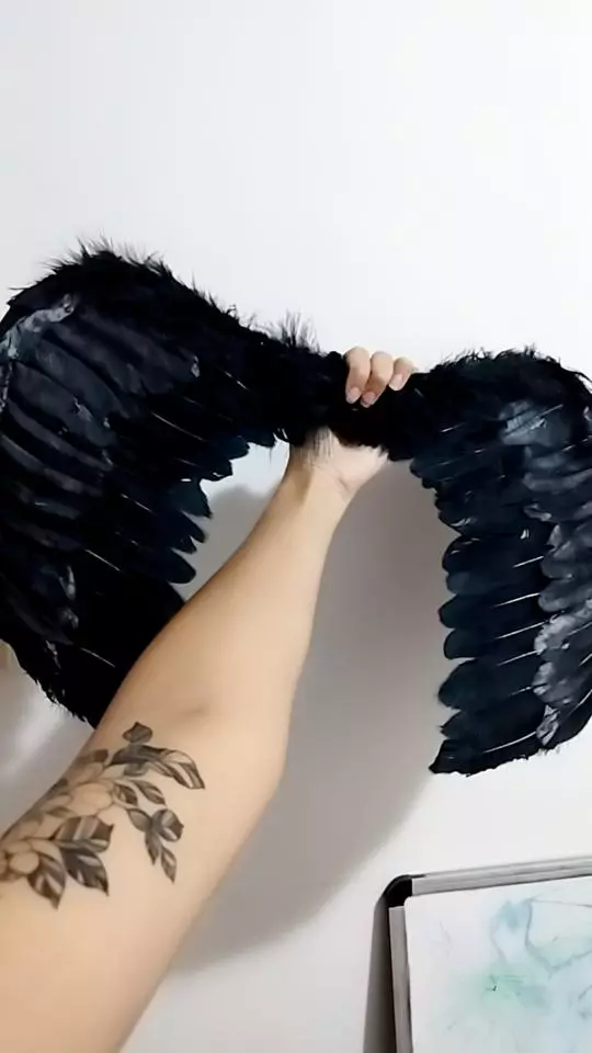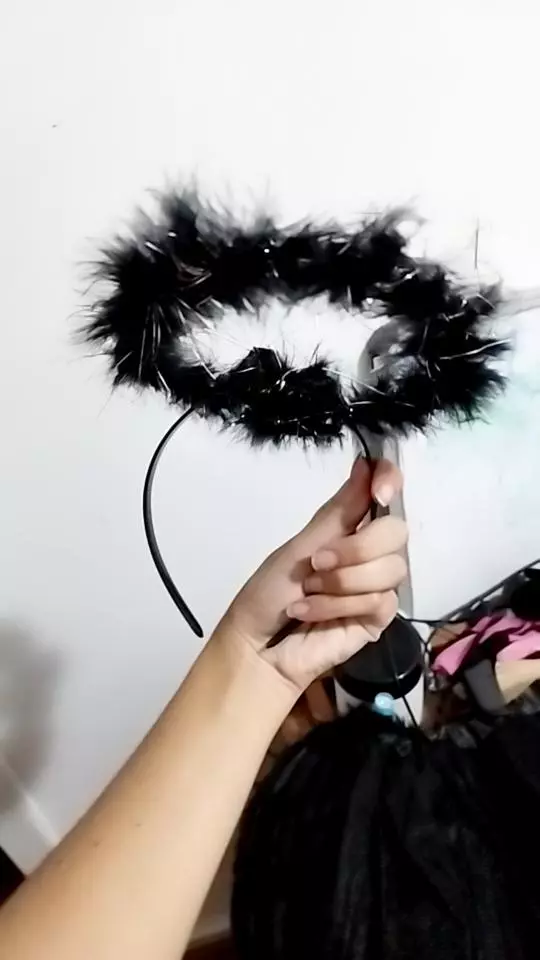 Kit Infantil Arco de Anjo, Asa 45x35cm e Saia 30cm - Carnaval Festa - Preto