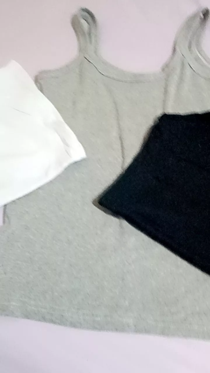 O Kit de Regatas Alcinha Branca, Cinza e Preta é composto por três peças feitas com 96% algodão e 4% elastano. Essas regatas são ideais para te acompanhar nos dias mais quentes, proporcionando conforto e estilo. Com alcinhas finas ajustáveis, elas se adaptam perfeitamente ao seu corpo. As cores branca, cinza e preta são versáteis e combinam com diferentes looks. Essas regatas podem ser usadas tanto sozinhas quanto como base para sobreposições. Garanta já o seu kit na loja online de roupas Raryel!