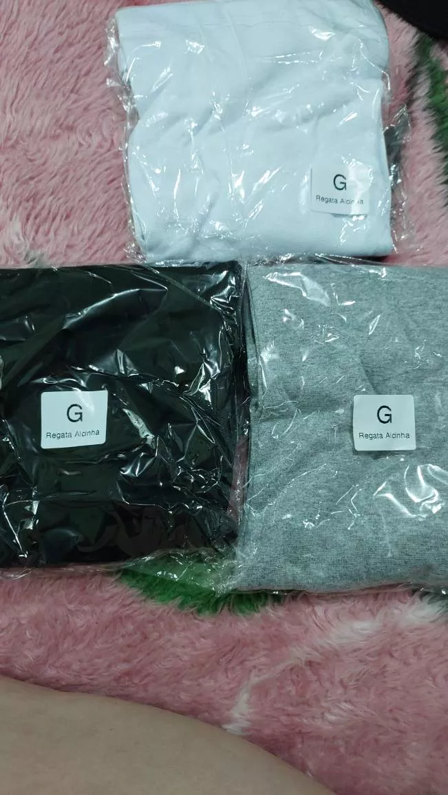 Kit Regatas Alcinha Branca, Cinza e Preta - 96% Algodão - M