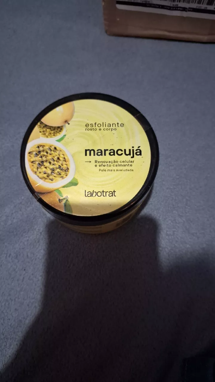O Esfoliante Maracujá da Labotrat acalmará sua pele enquanto realiza uma renovação celular incrível Esse produtinho ativa a microcirculação sanguínea da pele Composto de Óeo de Maracujá e de sementes naturais deixando a pele aveludada e com um toque de luminosidade perfeito Possui uma eficácia excelente na esfoliação do rosto corpo pés e no banho de lua