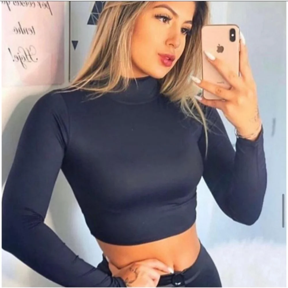 Compre a nova Blusinha Manga Longa Suplex Cropped Gola Alta, perfeita para o Outono e Inverno. Aproveite nossos preços baixos, promoções e descontos exclusivos comprando na loja online de roupas Raryel.