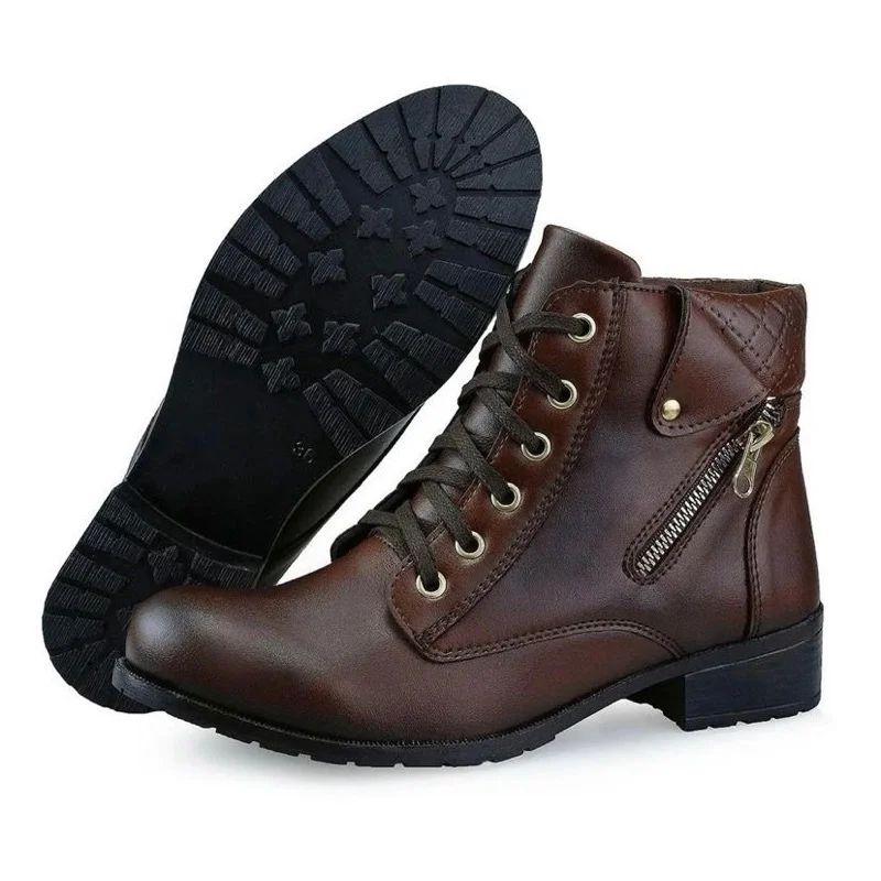 Lançamento Estiloso: Bota Coturno Feminina Cano Baixo Botinha - Marrom