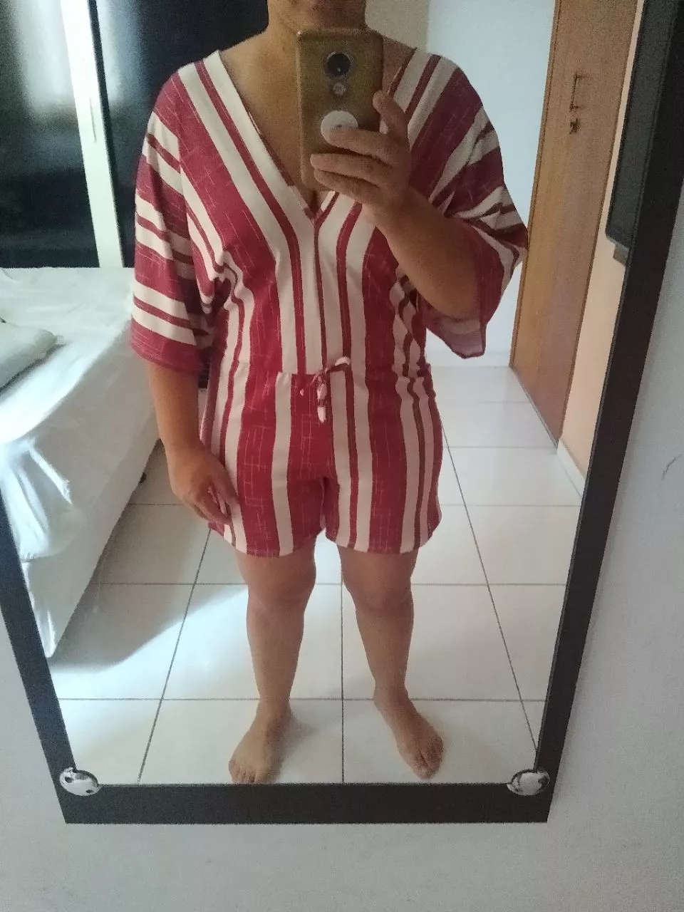 Compre o novo Macaquinho Manga Flare listrado em malha fria na loja online Raryel. Confortável e romântico, perfeito para um look estiloso. Aproveite nossos preços baixos e descontos!
