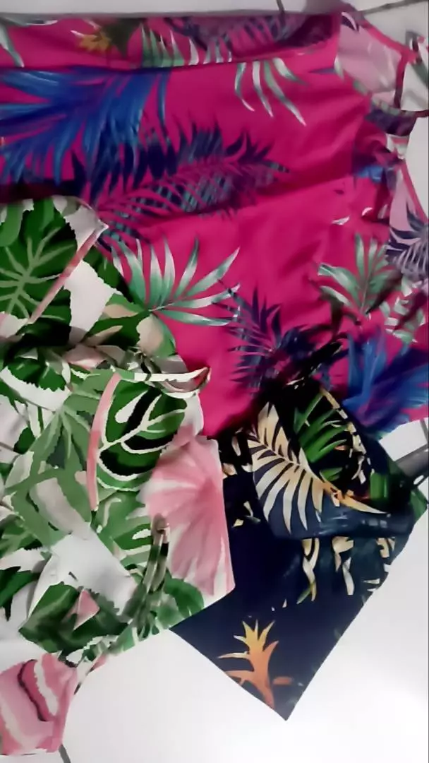 Lançamento regata estampada primavera verão decote v - Plantas/ pink