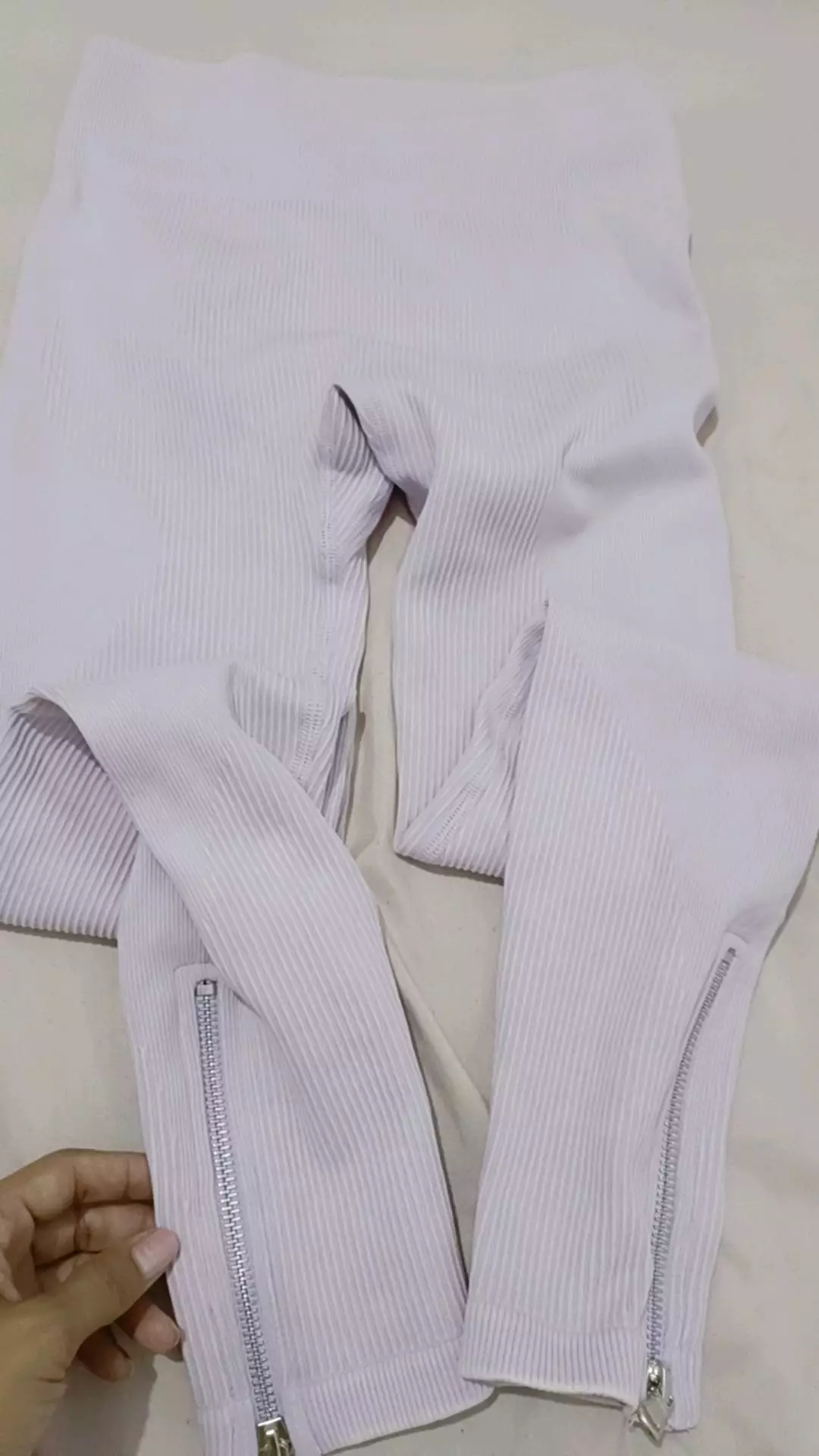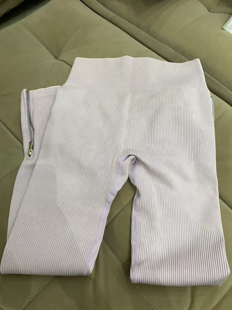 Legging Fitness Cintura Alta Levanta Bumbum com Zíper - Calça Sem Costura - Roxo Claro
