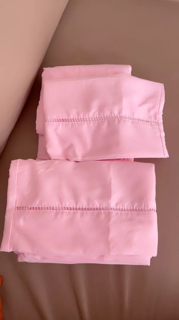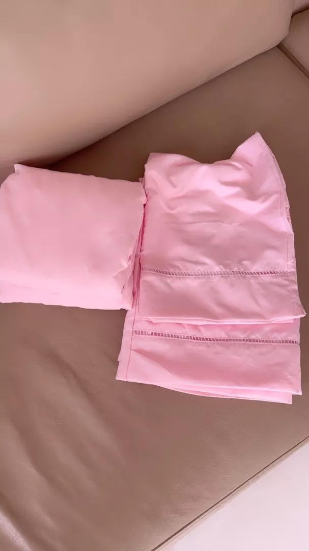 O lençol possui elástico em toda volta e as fronhas um lindo acabamento em PONTO PALITO