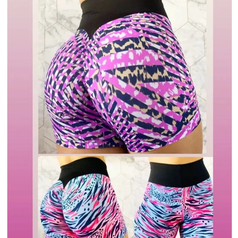 Shorts Fitness Feminino Cintura Alta Academia Levanta Bumbum ESTAMPAS SORTIDAS e variadas SEM OPÇÃO DE ESCOLHA DAS ESTAMPAS