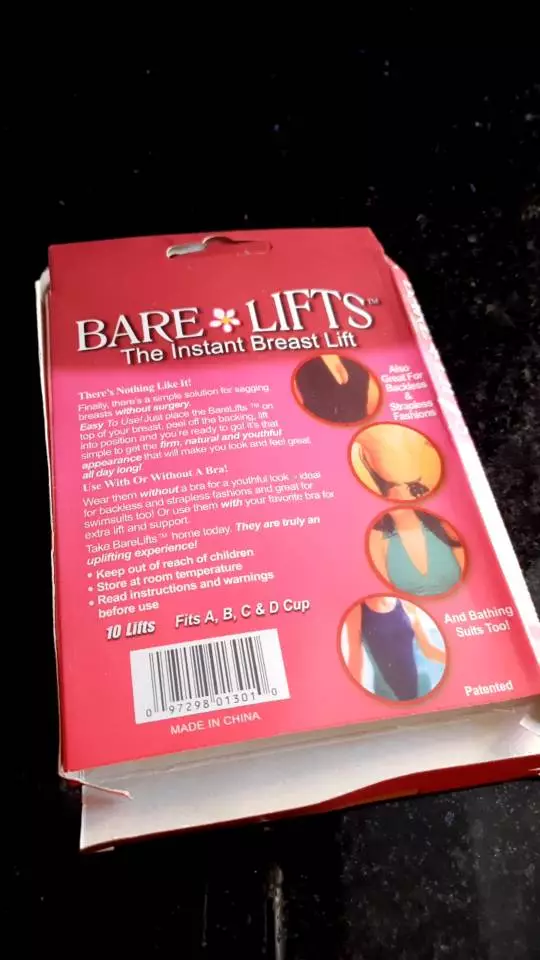 Retire o papel da parte superior do Bare Lifts segureo com as duas mãos levante até o ponto desejado e cole no seio